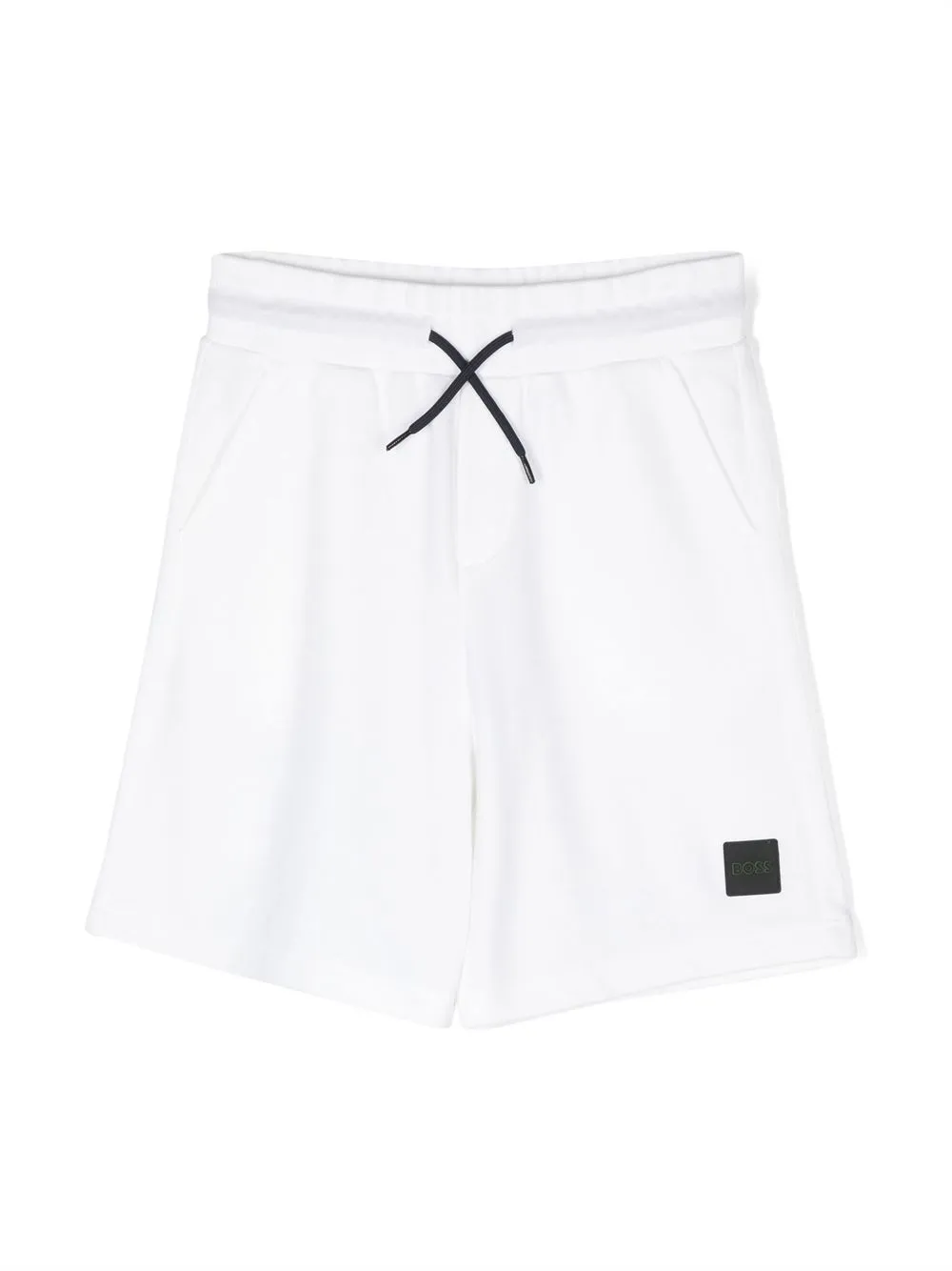 Blanc Cloud, coton mélangé, tricot point jersey, patch logo sur le côté, taille élastique à lien de resserrage, deux poches latérales fendues, poche arrière plaquée, longueur au dessus du genou.