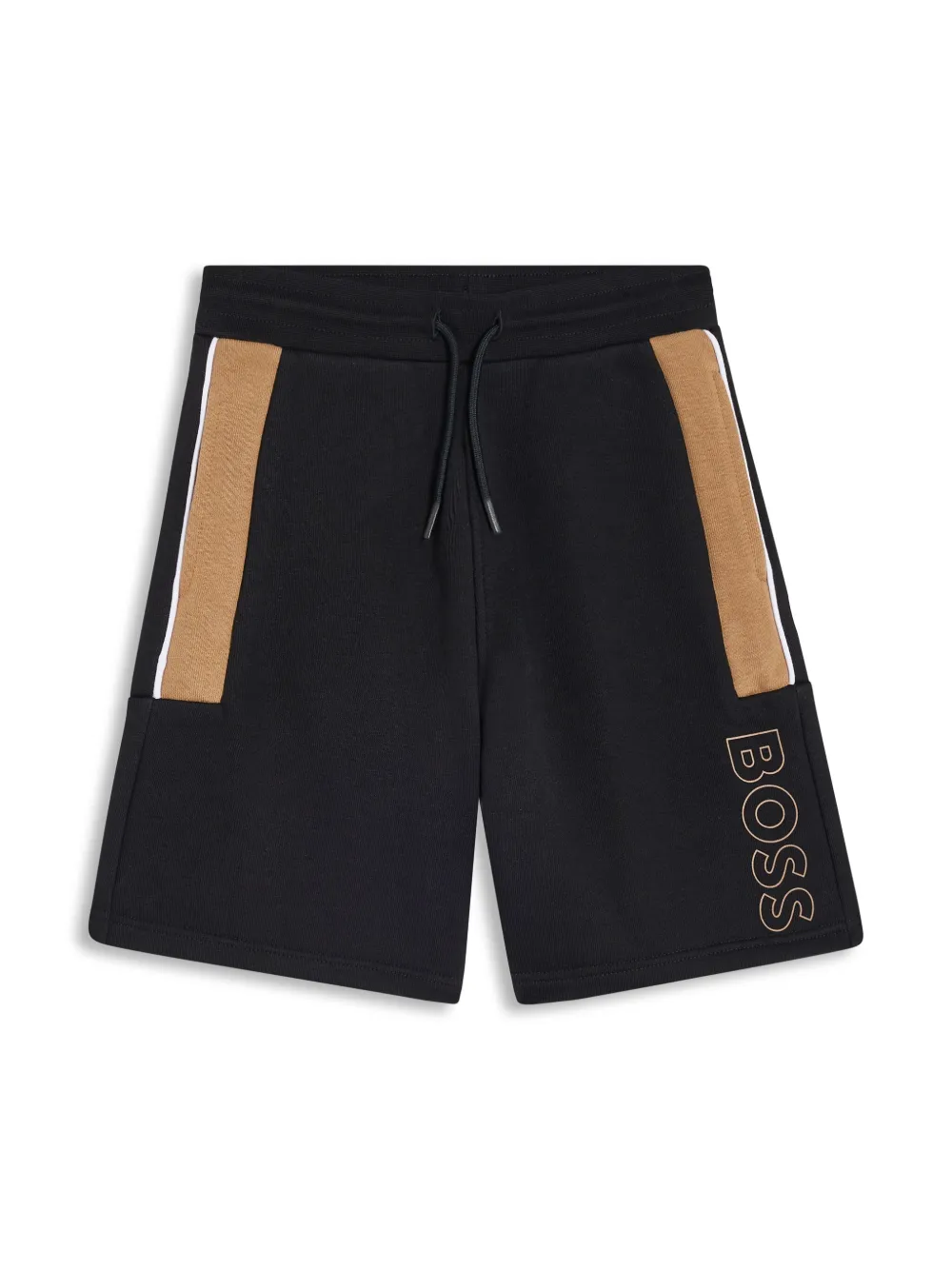 noir/beige coton mélangé logo imprimé sur le côté taille élastique à lien de resserrage deux poches latérales passepoilées