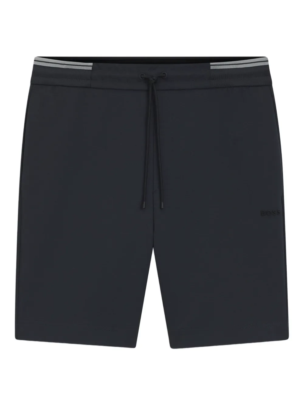 bleu marine taille élastique à lien de resserrage détail de logo bandes contrastantes