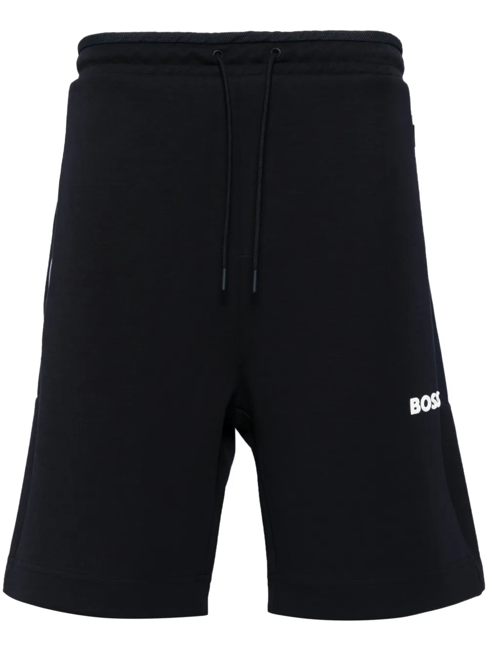noir/blanc coton mélangé texture jersey logo imprimé sur le côté longueur genou deux poches latérales zippées taille à lien de resserrage