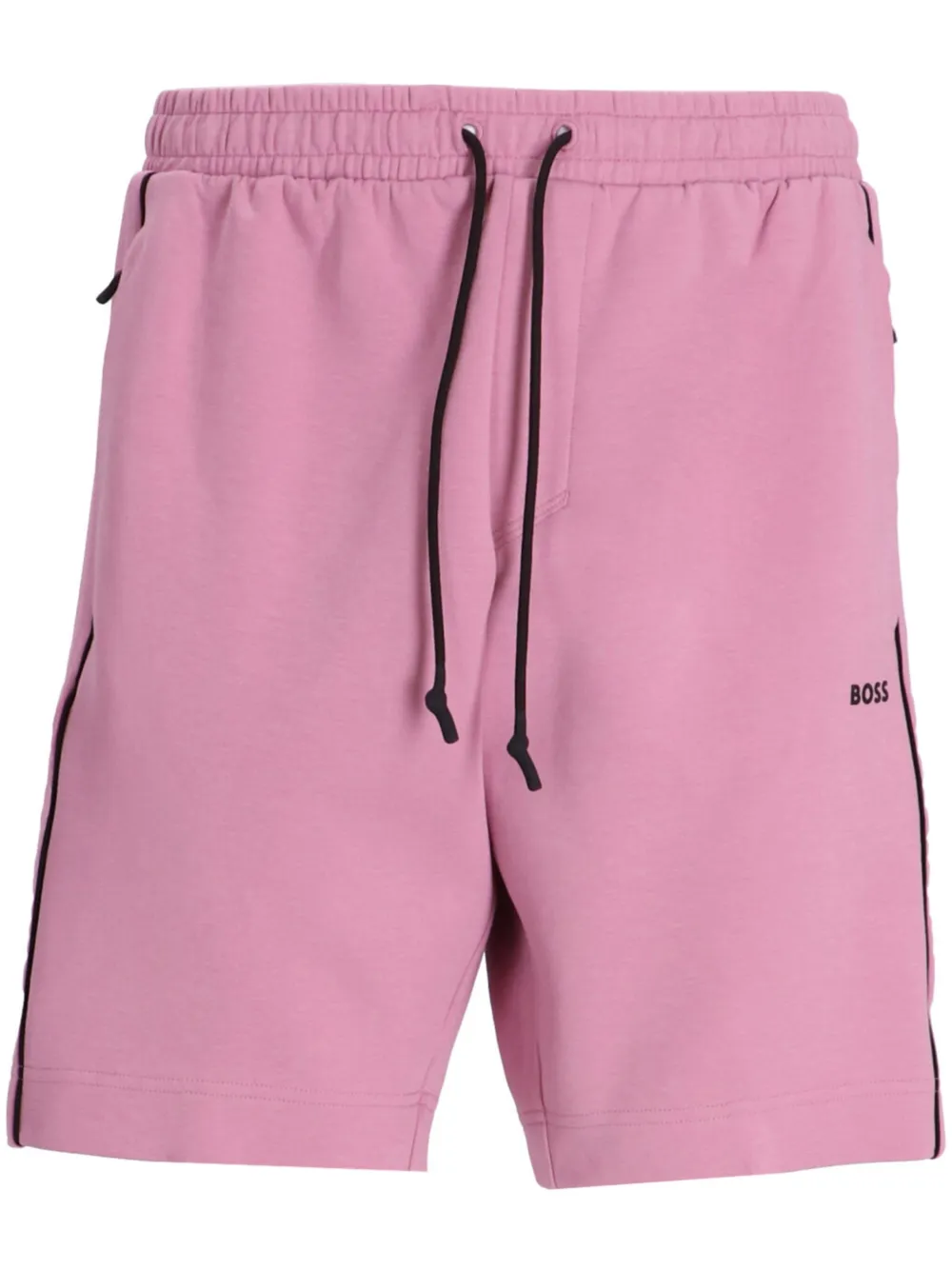 rose coton logo imprimé sur le devant lien de resserrage à la taille deux poches latérales zippées poche arrière passepoilée ourlet droit