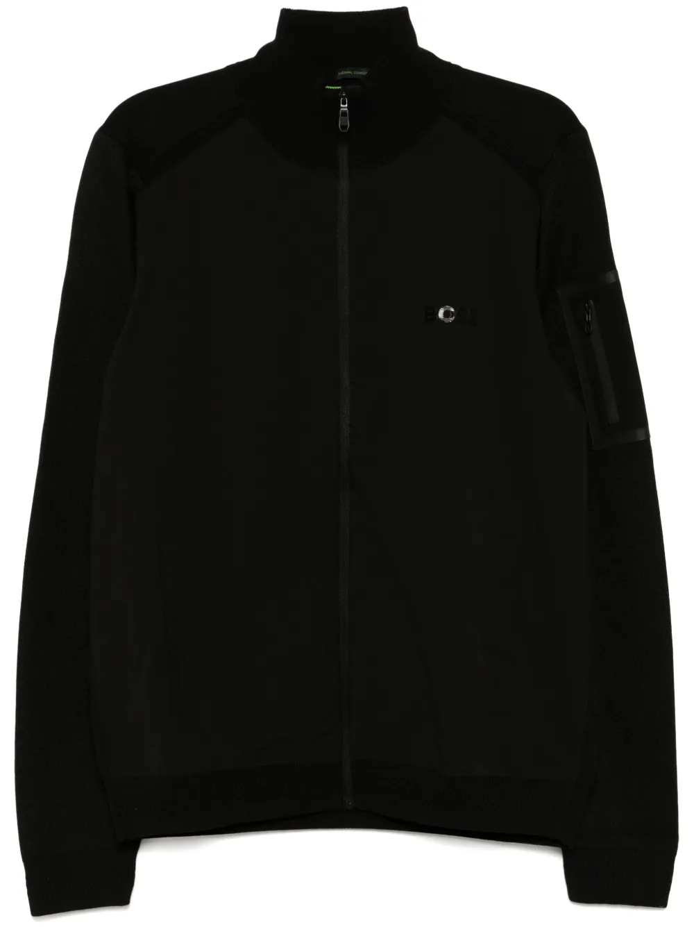 noir fermeture zippée devant manches à tissu contrastant deux poches passepoilées latérales col montant