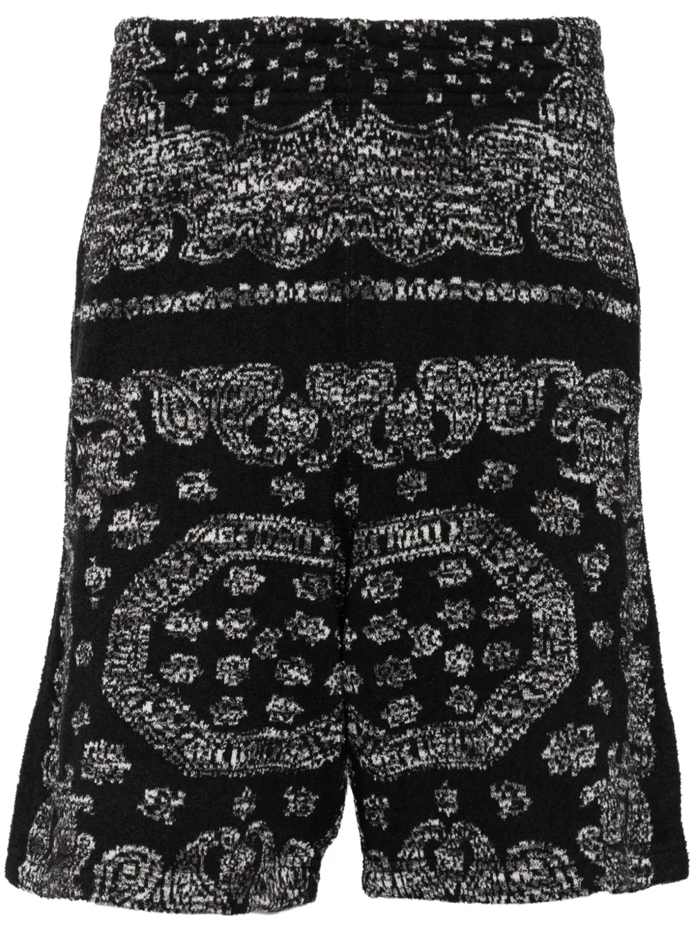 noir/blanc design en fil bouclé jacquard à motifs motif cachemire design bicolore taille mi-haute ceinture élastique coupe droite deux poches latérales passepoilées poches arrière boutonnées longueur au dessus du genou