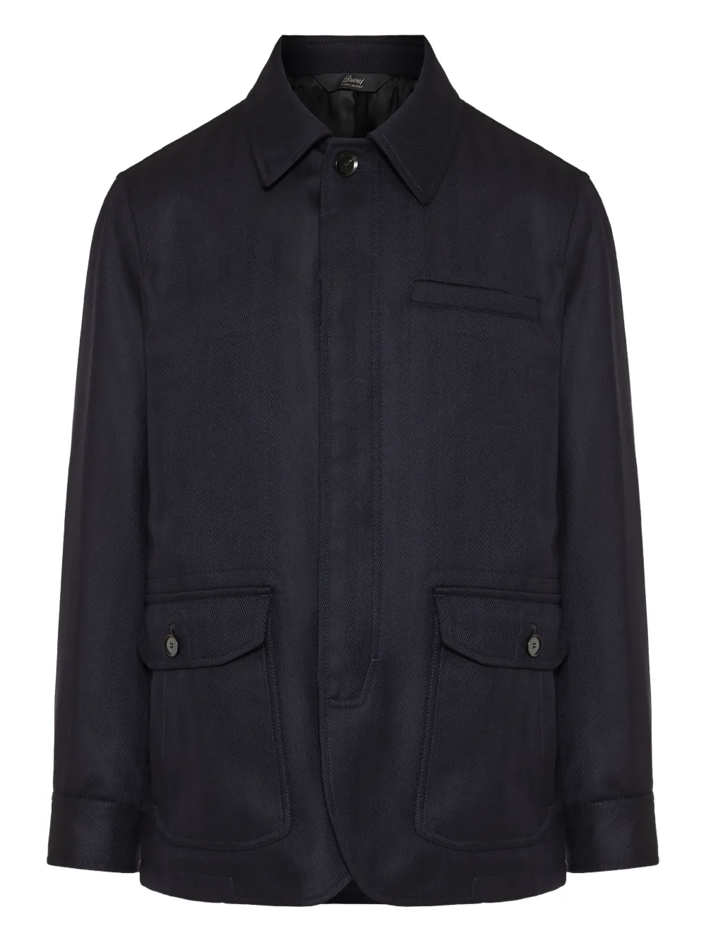 bleu motif de chevrons poches à rabat fermeture boutonnée col pointu manches longues