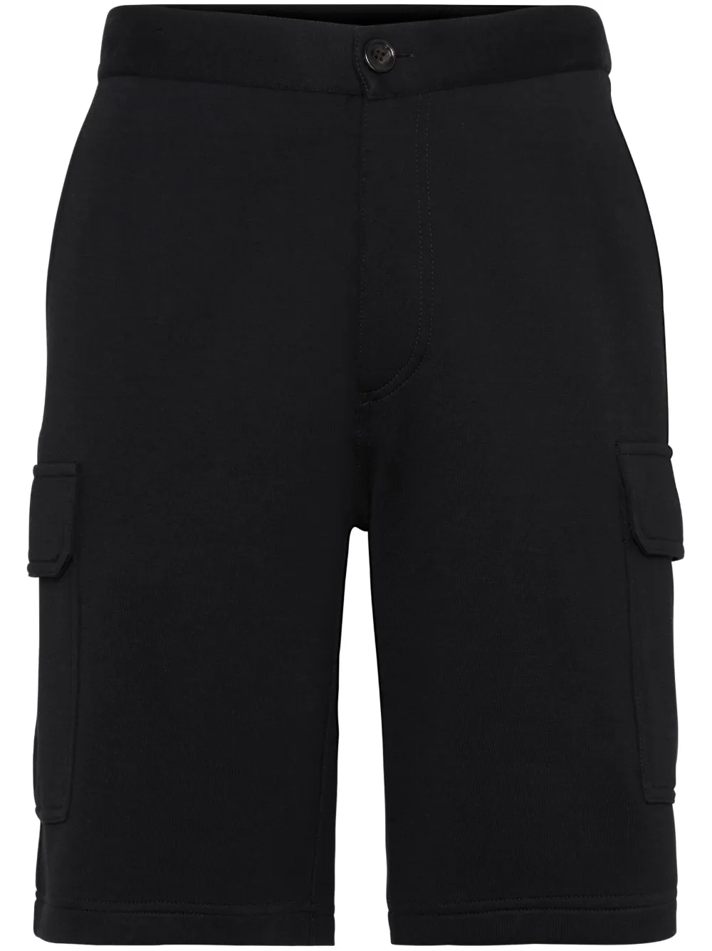 noir boutonnière sur le devant deux poches cargo latérales deux poches arrière à rabat ourlet droit