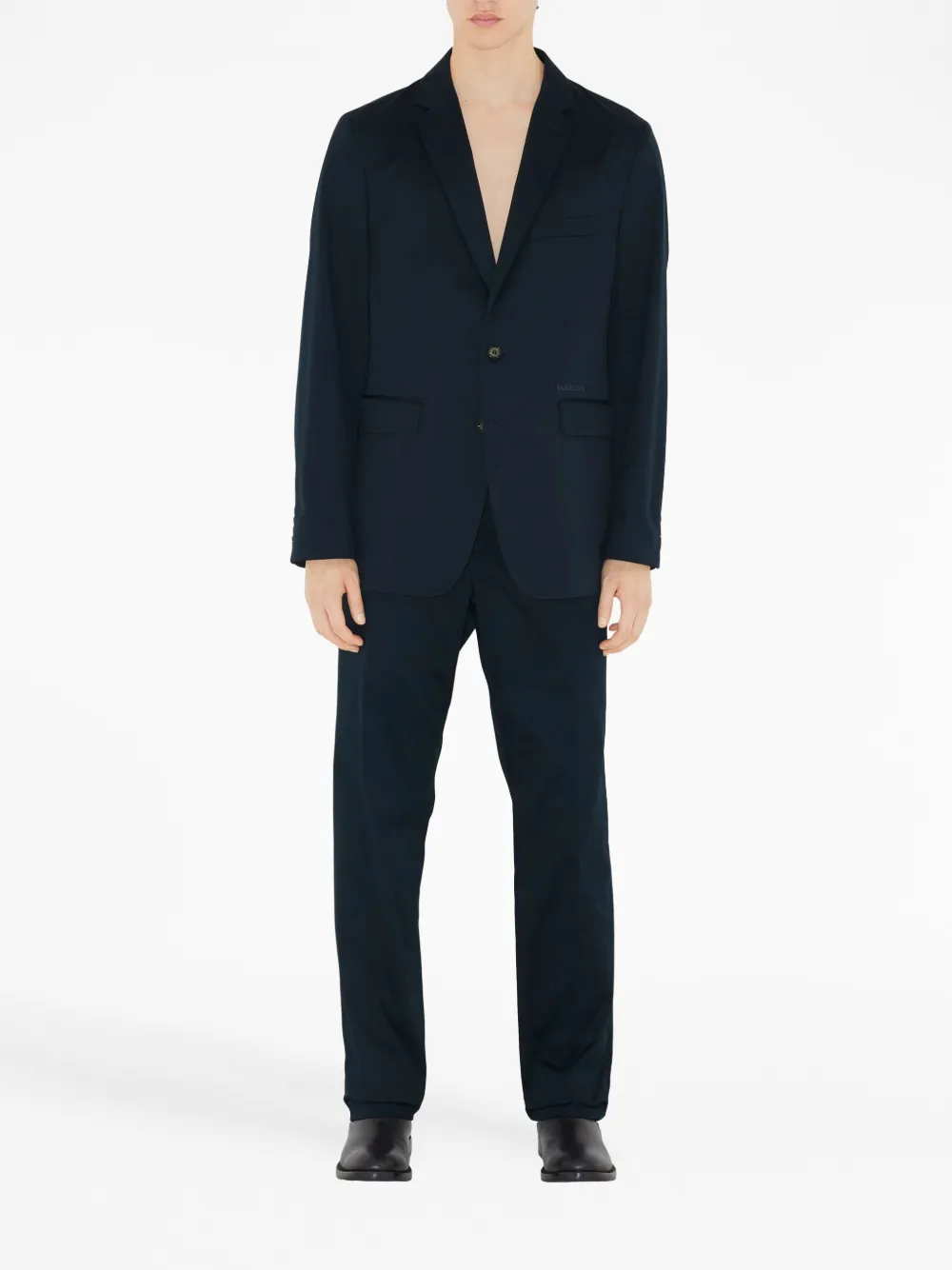 Marineblauw, katoen, ruitenprint, gekerfde kraag, knoopsluiting aan de voorkant, lange mouwen, knoopmanchetten, opgestikte steekzak, twee klepzakken aan de voorkant, rechte zoom, midden split aan de achterkant en katoenen voering.
