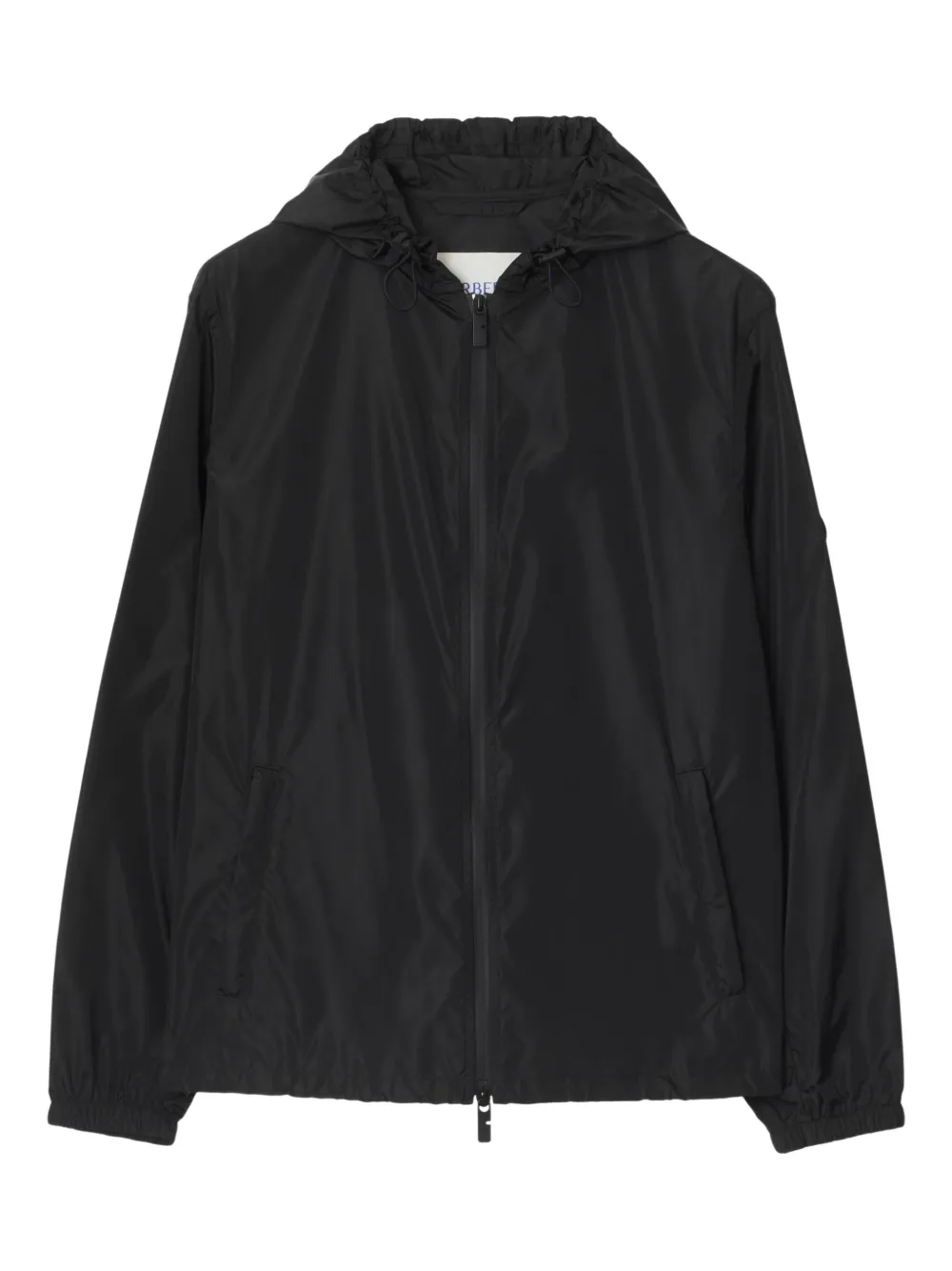 noir fermeture zippée à double sens sur le devant capuche à lien de resserrage deux poches passepoilées latérales poignets élastiqués