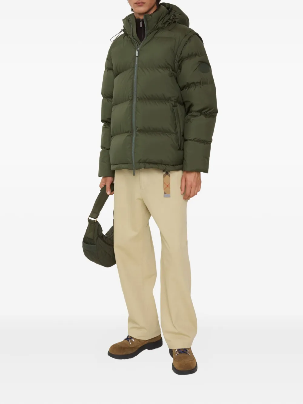 donkergroen donsvoering ritssluiting afneembare capuchon afneembare mouwen ritszakken mouwen met logopatch