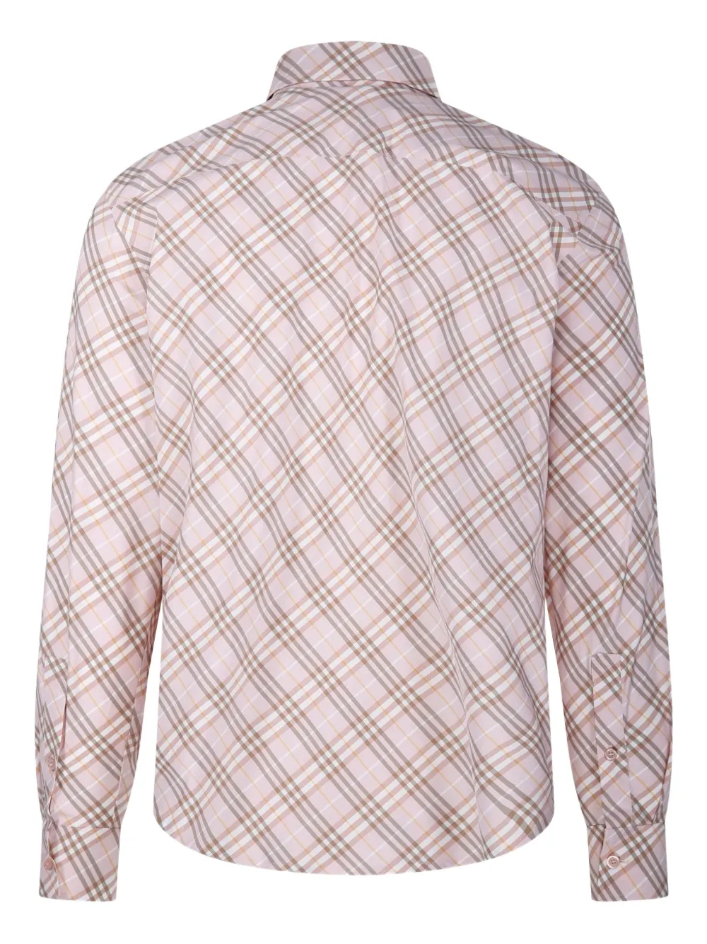 roze geruit knoopsluiting lange mouwen borstzak logodetail