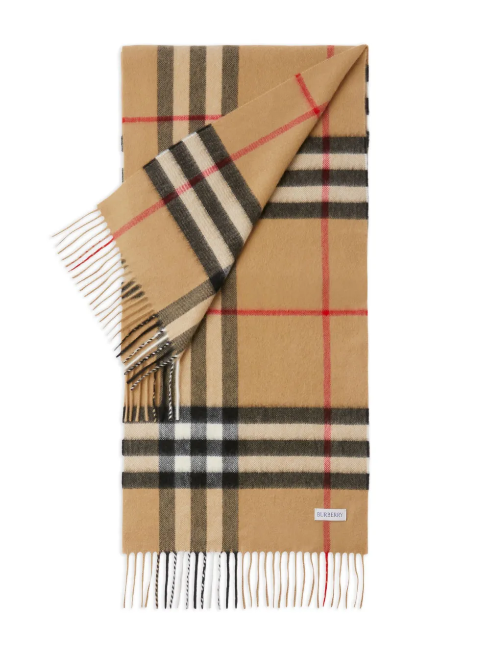 Archive beige, kasjmier, Vintage check, rechthoekige vorm, gewikkelde stijl en franjezoom.