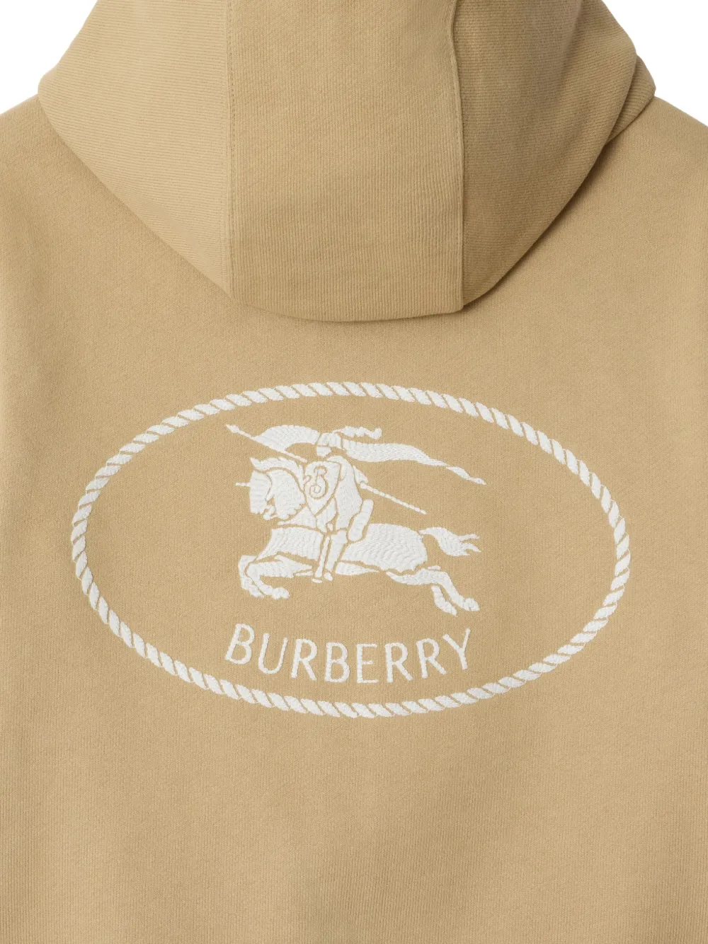 zandbeige ritssluiting aan de voorkant twee zakken aan de voorkant kenmerkend Equestrian Knight patroon capuchon met trekkoordsluiting