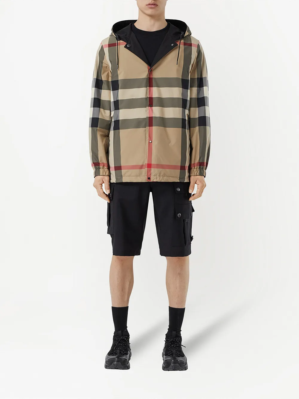 iconische ruiten logopatch aan de voorzijde capuchon met trekkoordsluiting drukknoopsluiting elastische manchetten POSITIVELY CONSCIOUS: Dit Burberry item is gemaakt van gerecycled materiaal. Door dit artikel te kiezen, draag je een steentje bij aan een betere wereld. Kies positively