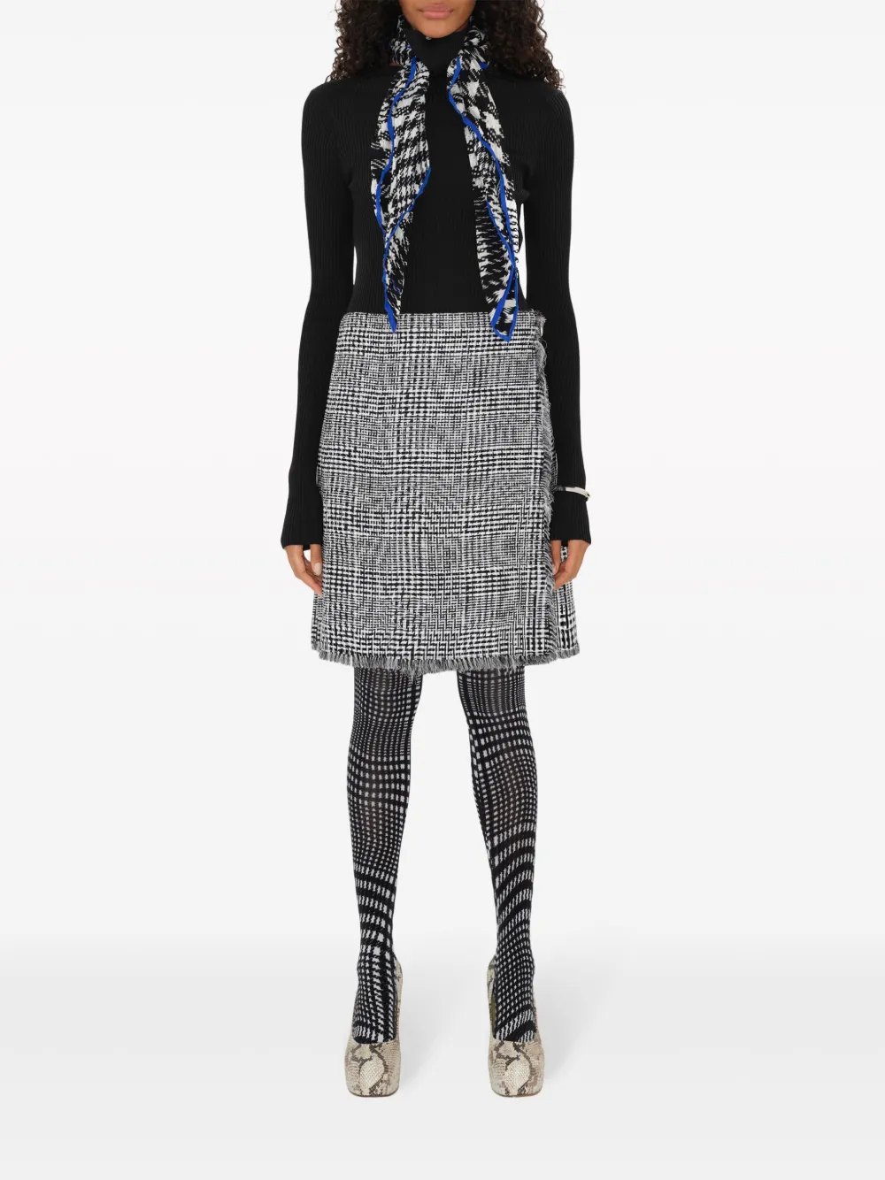 zwart zijde ribgebreid kenmerkend Equestrian Knight patroon geborduurd logo sjaaldetail hoge hals lange mouwen rechte zoom