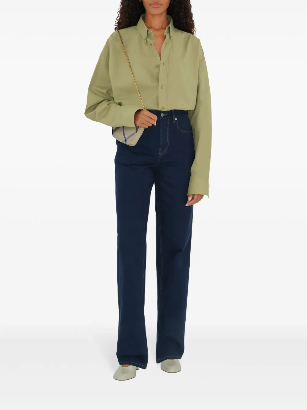 licht beige/veelkleurig lamsleer goudkleurige hardware geruit schouderband met schakels ritssluiting aan de bovenzijde hoofdvak