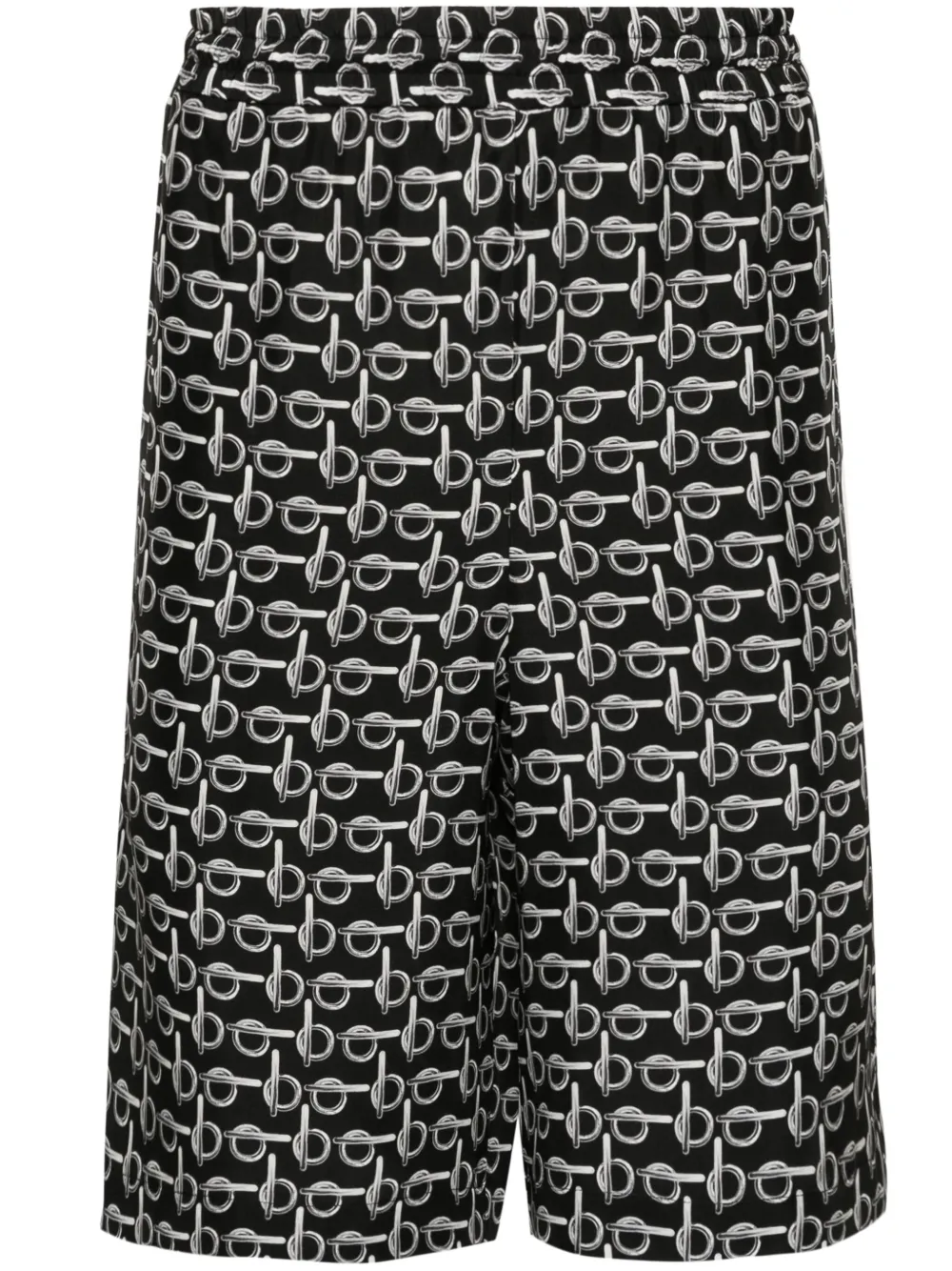noir/blanc/gris soie fini satiné↑ motif de fermeture « B » all-over ceinture élastique poches latérales fendues poche arrière plaquée longueur genou lien de resserrage ^