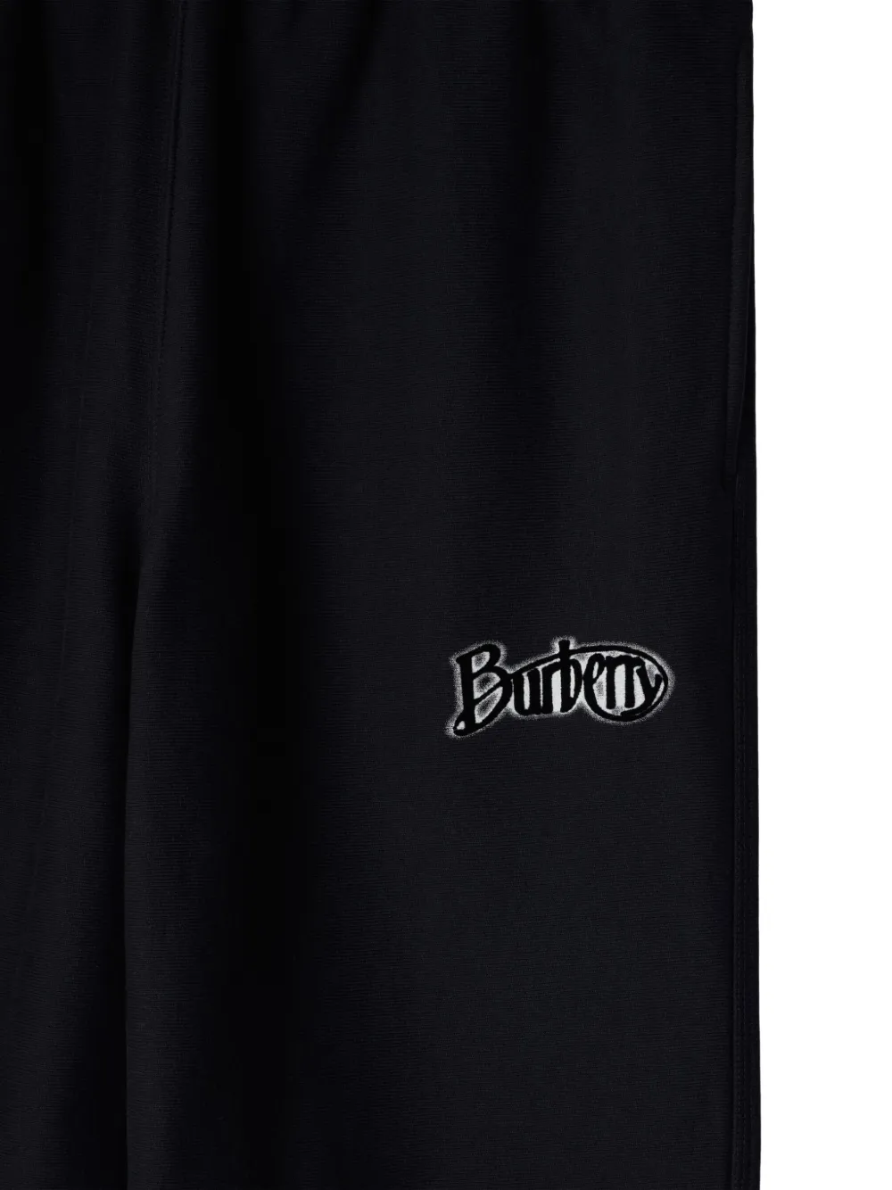 zwart katoenblend logoprint op de voorkant elastische tailleband twee steekzakken aan de zijkant elastische enkels