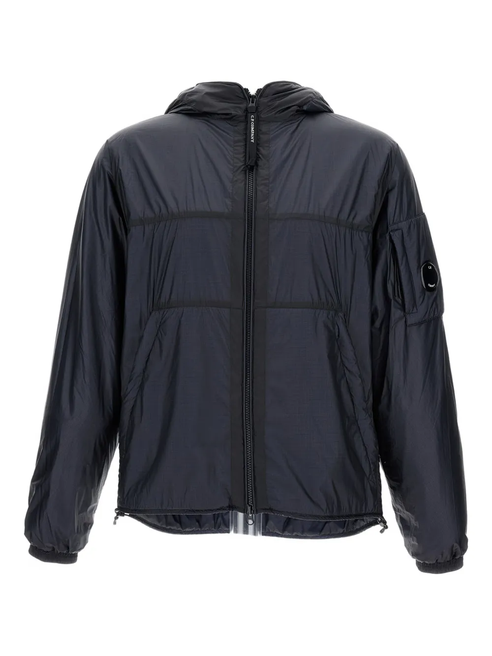 bleu foncé fermeture zippée détail de lentille C.P. Company suggère de retirer tout accessoire détachable avant le lavage.