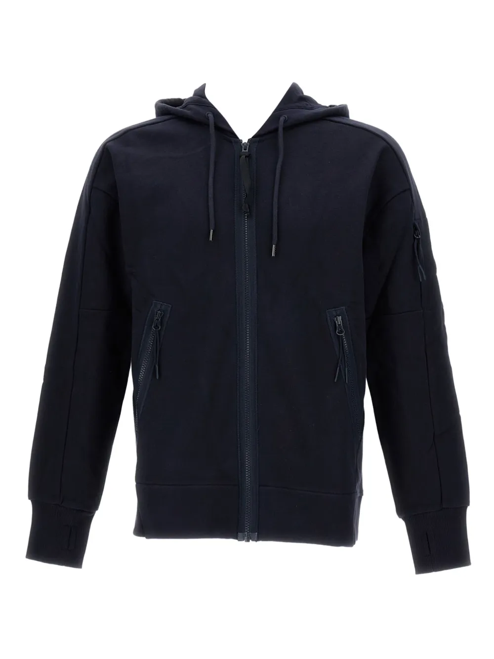 bleu marine zip intégral poches avant détail de lentille col à capuche coton