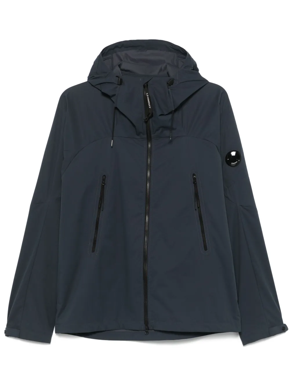 bleu marine fermeture zippée à double sens capuche à lien de resserrage deux poches latérales zippées poignets à boutons pression