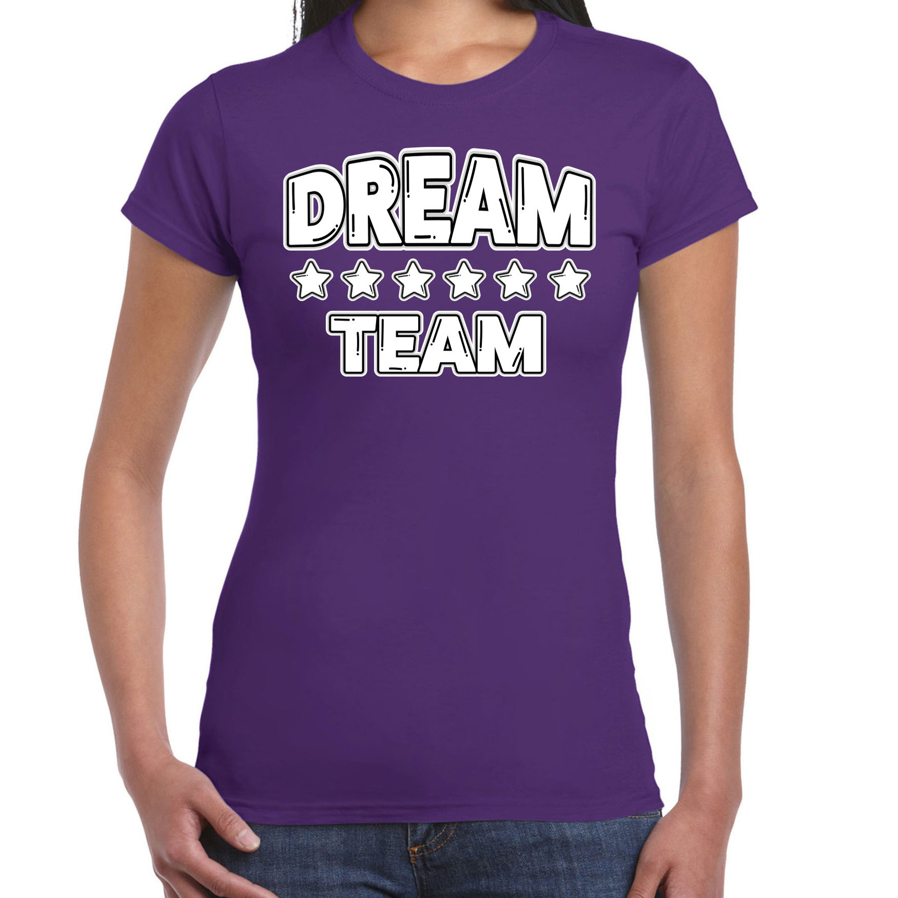 Ga voor teamspirit met het Cadeau Sport T-shirt voor dames in stijlvol paars! Met de opdruk “Dream Team” straalt dit T-shirt niet alleen samenwerking uit, maar ook motivatie en kracht. Ideaal voor team building, sportdagen, groepsuitjes, of gewoon als casual outfit. Til jouw team naar een hoger niveau met dit stijlvolle en comfortabele Dream Team T-shirt perfect voor sport, samenwerking en plezier! Materiaal: 145 grams, 100% katoen. Merk: Bellatio Decorations.