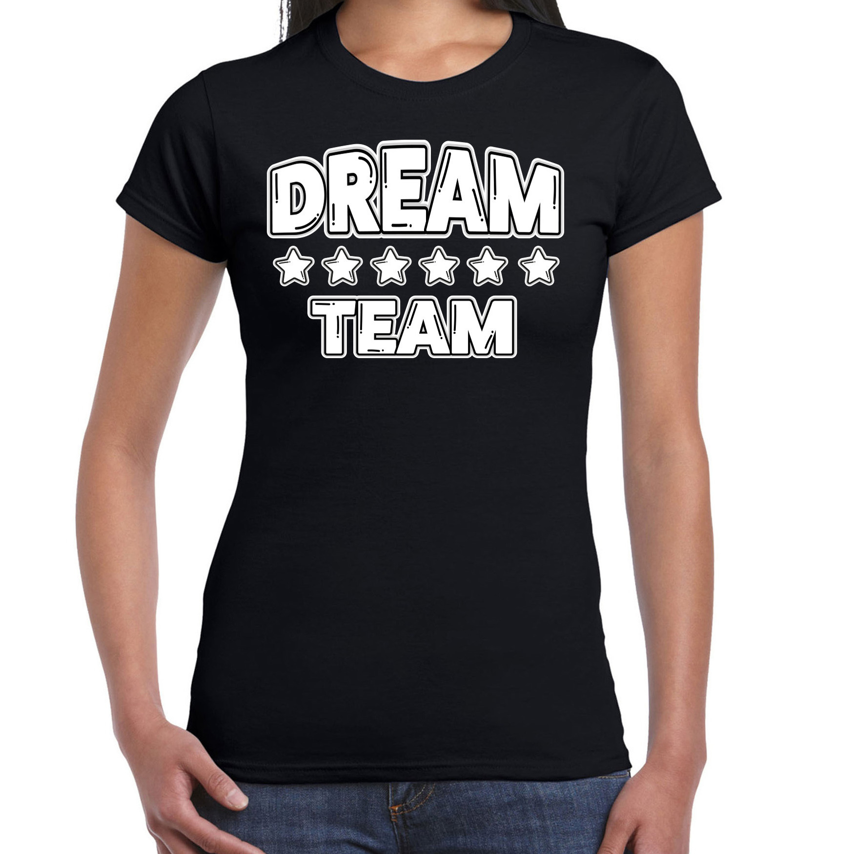 Ga voor teamspirit met het Cadeau Sport T-shirt voor dames in stijlvol zwart! Met de opdruk “Dream Team” straalt dit T-shirt niet alleen samenwerking uit, maar ook motivatie en kracht. Ideaal voor team building, sportdagen, groepsuitjes, of gewoon als casual outfit. Til jouw team naar een hoger niveau met dit stijlvolle en comfortabele Dream Team T-shirt perfect voor sport, samenwerking en plezier! Materiaal: 145 grams, 100% katoen. Merk: Bellatio Decorations.