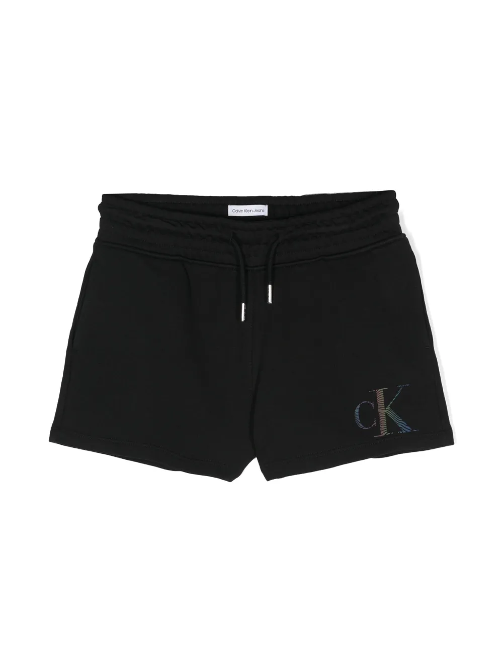 noir coton texture jersey poches latérales fendues logo imprimé sur la cuisse coupe courte doublure en éponge taille élastique à lien de resserrage