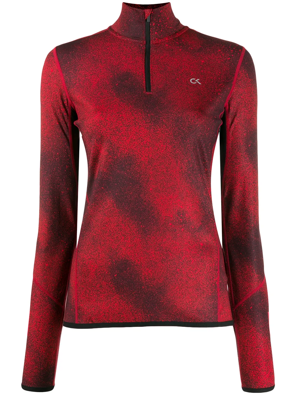 Veste zippée à logo imprimé au dos Calvin Klein avec silhouette ajustée, imprimé all-over, logo imprimé à l’arrière, col officier, manches longues, ourlet droit et fermeture zippée.