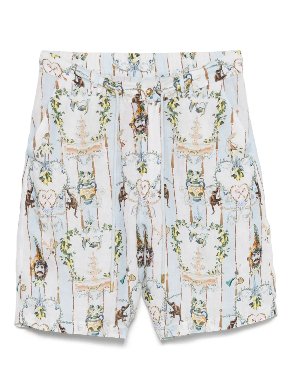 bleu imprimé graphique intégral taille élastique à lien de resserrage