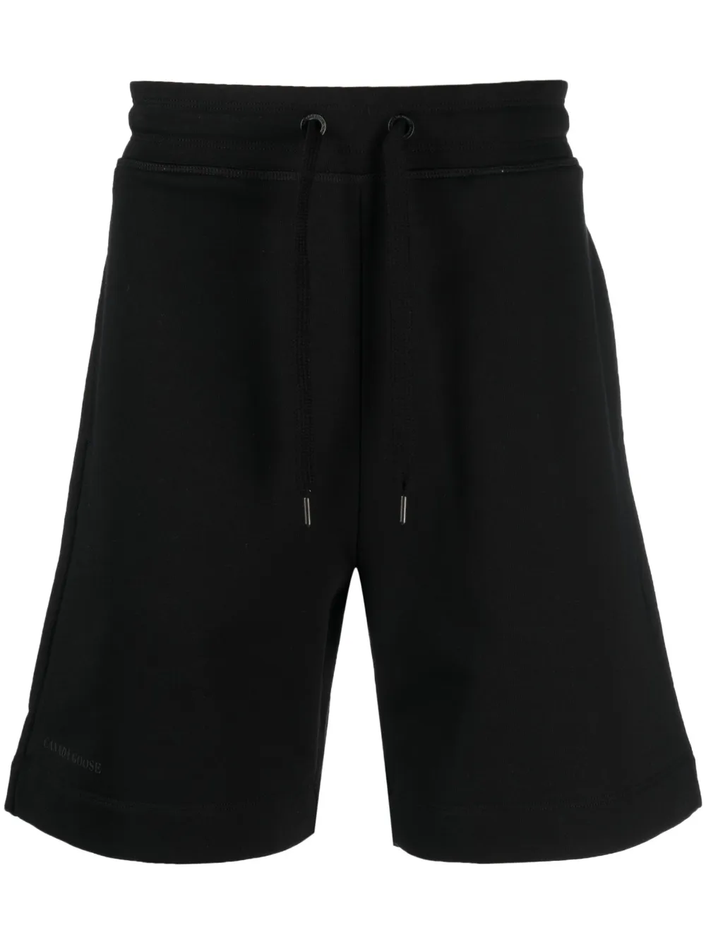 Noir, coton, logo imprimé sur le devant, taille élastique à lien de resserrage, deux poches latérales fendues, poche arrière plaquée.