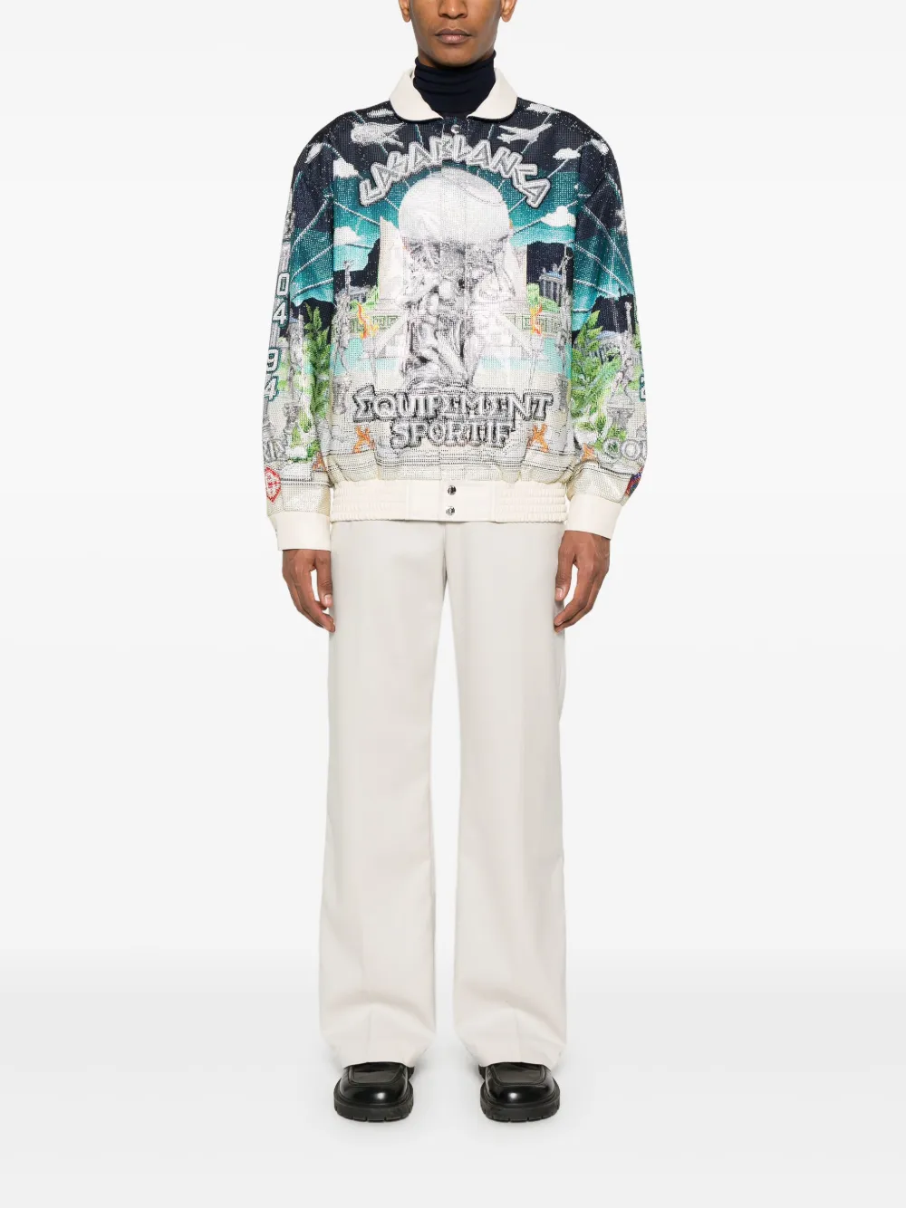 wit/veelkleurig drukknoopsluiting aan de voorkant verfraaid met kristallen leren afwerking ronde kraag verlaagde schouders lange mouwen manchetten met drukknoopsluiting logoprint op de voorkant all-over grafische print twee paspelzakken aan de zijkant logoprint op de achterkant volledige voering elastische zoom