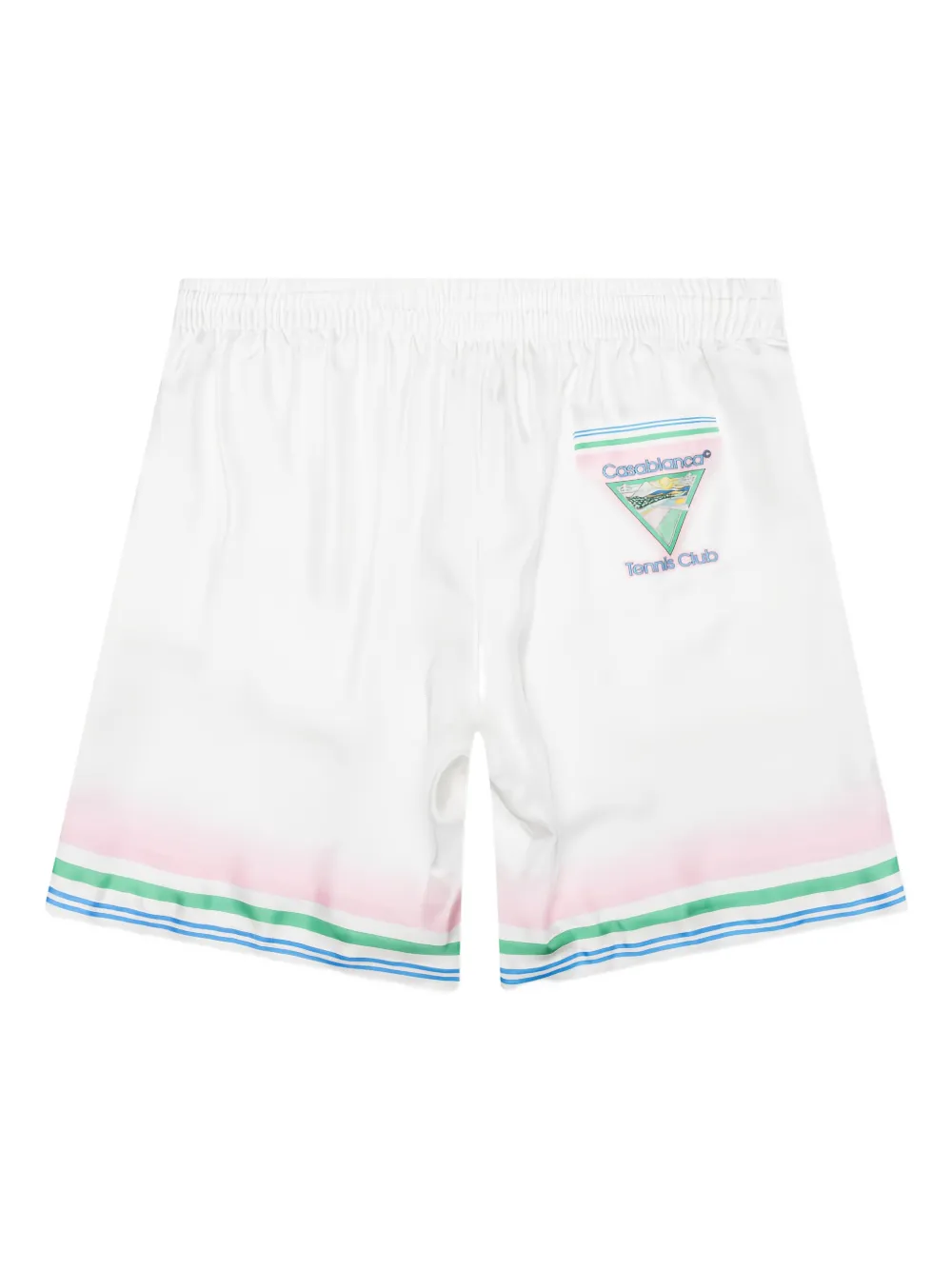 blanc soie bordures rayées multicolores graphique tennis club taille à lien de resserrage ourlet droit