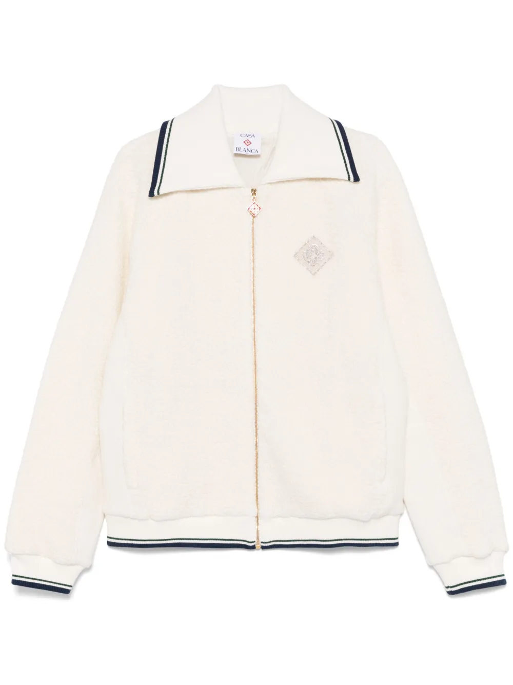 blanc fermeture zippée devant deux poches latérales zippées détails rayés manches longues