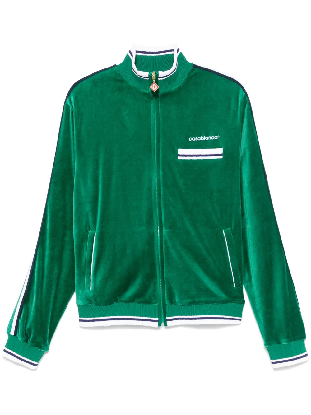 vert forêt velours fermeture zippée devant zip à logo col montant logo brodé sur la poitrine poche passepoilée sur la poitrine détail de rayure latérale manches longues ourlet et bords nervurés deux poches passepoilées latérales doublure en résille ourlet droit