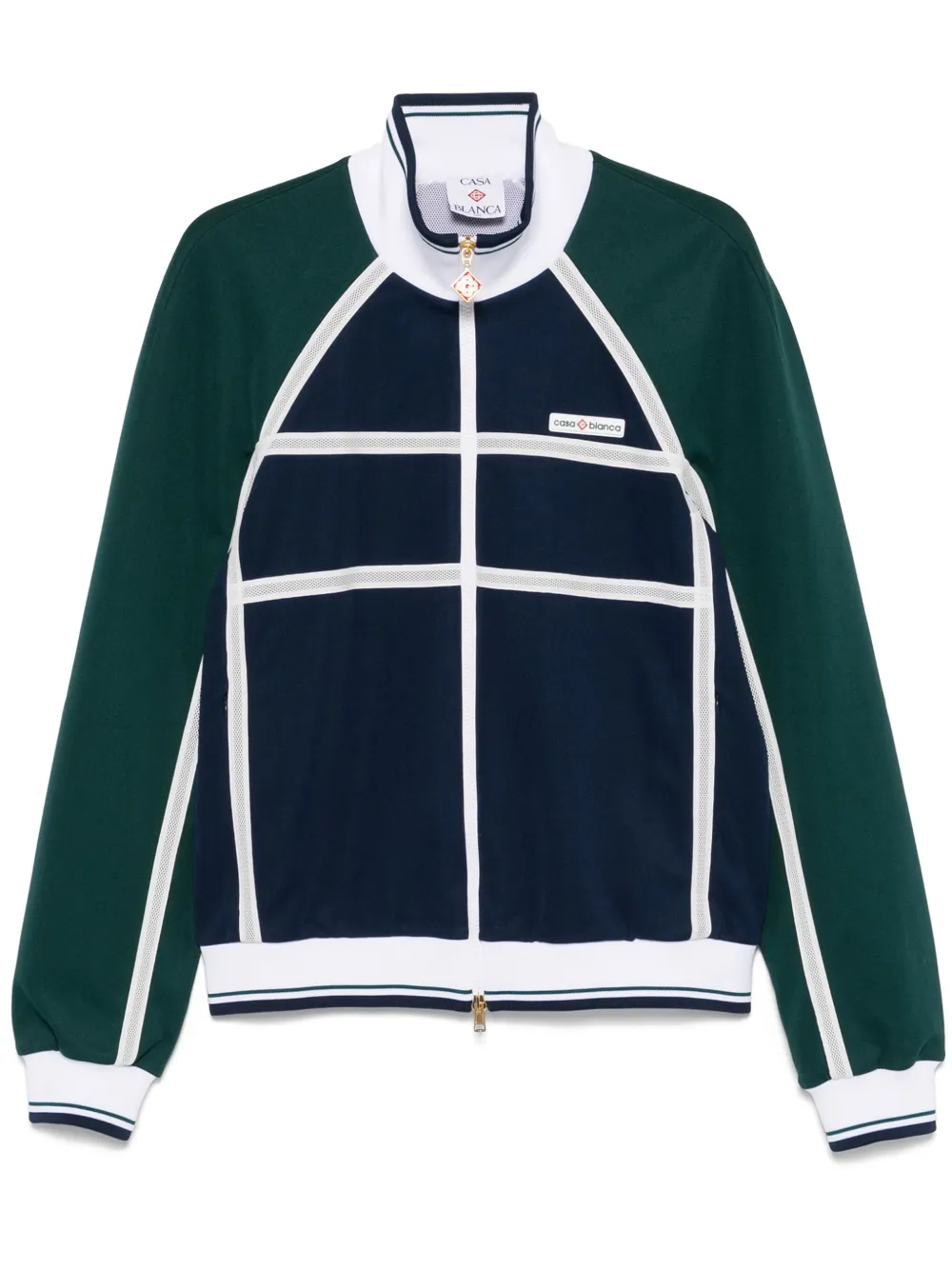bleu marine fermeture zippée à double sens sur le devant ourlet et bords nervurés deux poches latérales zippées design à empiècements