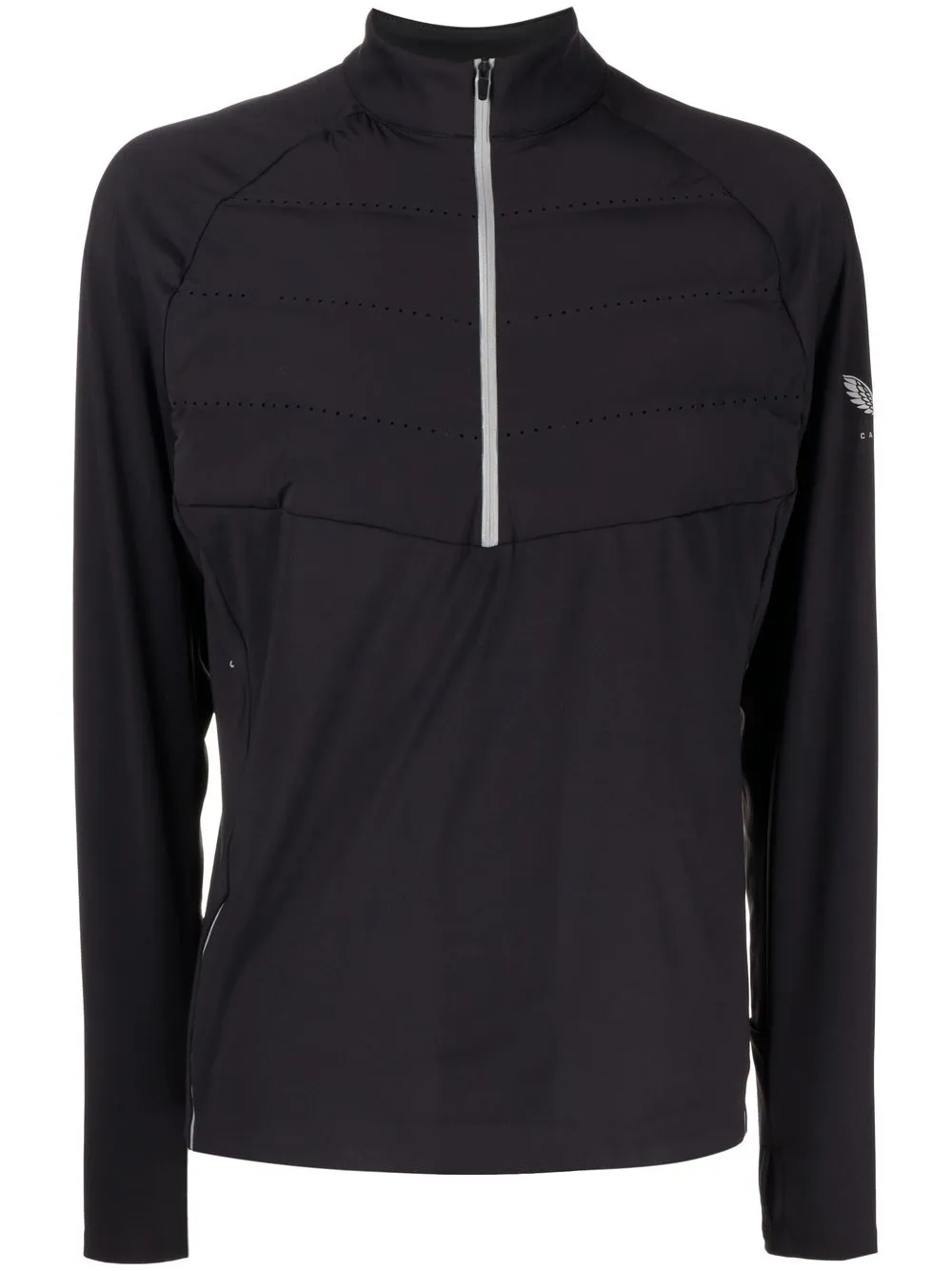 Noir/blanc, branche à logo imprimé, col cheminée, fermeture zippée devant, manches longues.