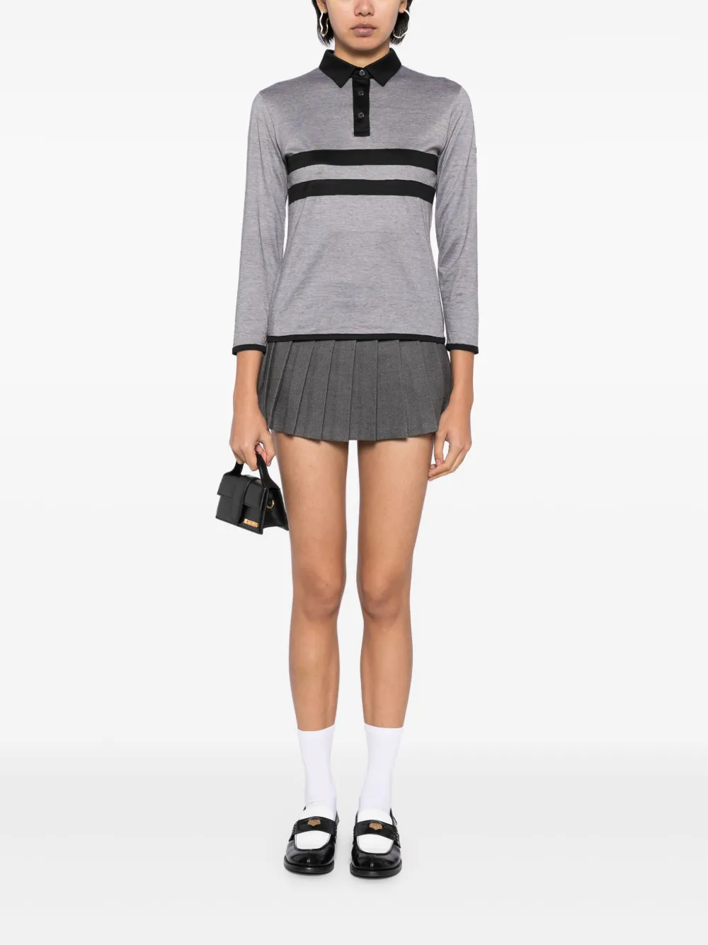 circa 2006 zwart katoen gestreepte stof Contrasterende biezen geborduurd logo op de mouw polokraag knoopsluiting Staat: GOED. Dit item is eerder in iemands bezit geweest en gebruikt, maar verkeert in goede staat met minimale gebruikssporen. Dit kan vervaging van materiaal of beplating en krassen omvatten.