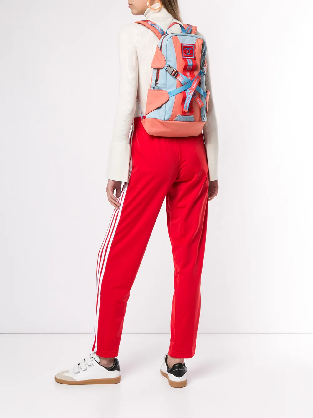 Sport Line CC rugtas van Chanel Pre-owned uitgevoerd in leder voorzien van verstelbare bandjes, bovenhandgreep, contrasterend colourblock design, antieke goudkleurige fittingen, kenmerkend gekruist CC-logo, rits omhoog en groot binnenvak. Let op: pre-owned items zijn niet nieuw en kunnen eventuele beschadigingen bevatten.. Dit artikel wordt geleverd met een origineel echtheidscertificaat van Chanel.