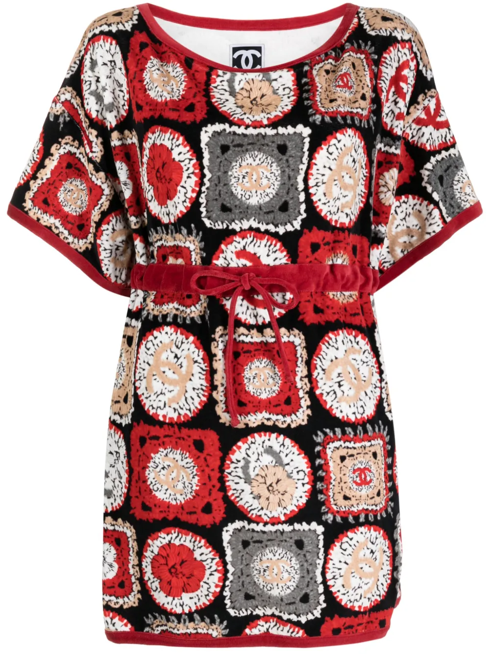 vers 2009 noir/multicolore coton stretch texture polaire imprimé patchwork col rond manches courtes taille à lien de resserrage ourlet droit État : BON. Cet article de seconde main et déjà utilisé est en bon état avec des signes d’utilisation minimes. Cela peut inclure la décoloration du matériau, du placage et des rayures.