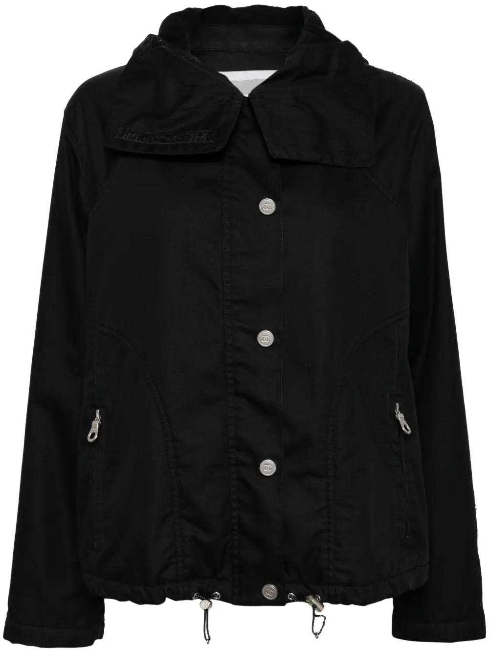vers 2002 noir boutons à logo CC embossé capuche classique boutonnière sur le devant manches longues deux poches latérales zippées ourlet à lien de resserrage État : BON. ^ Cet article pre-owned est en bon état et présente des signes d’usure minimes. ^ Il peut s’agir d’une décoloration de la matière ou du revêtement ou des rayures.