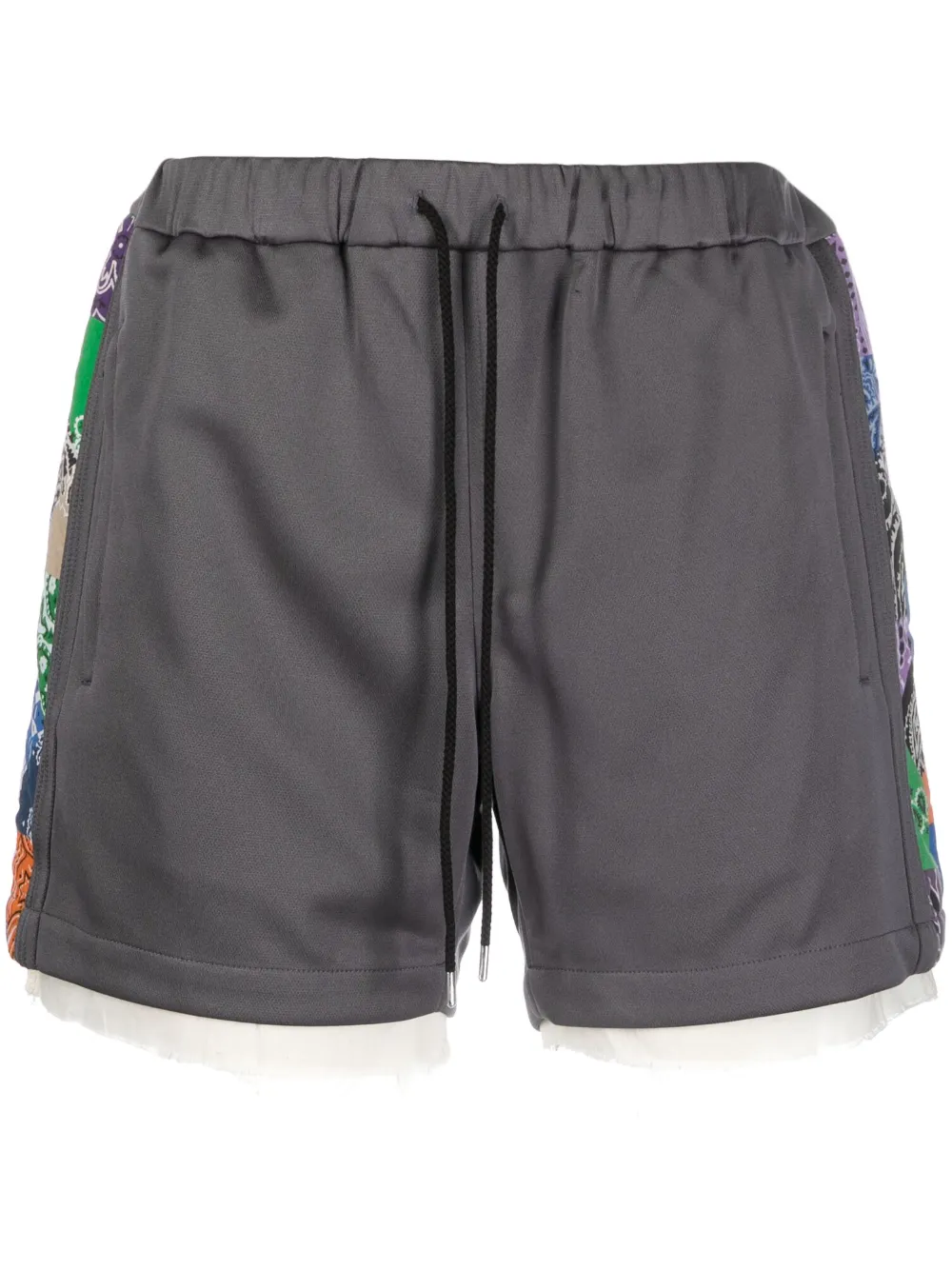 Gris Beluga, imprimé bandana, taille élastique à lien de resserrage, poches latérales fendues, poches arrière passepoilées.