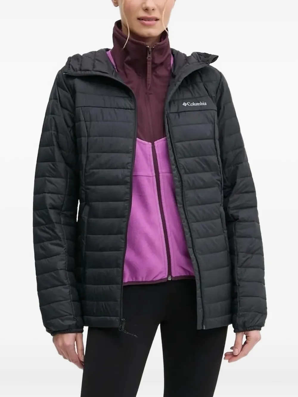 noir matelassage horizontale fermeture zippée capuche attachée logo brodé