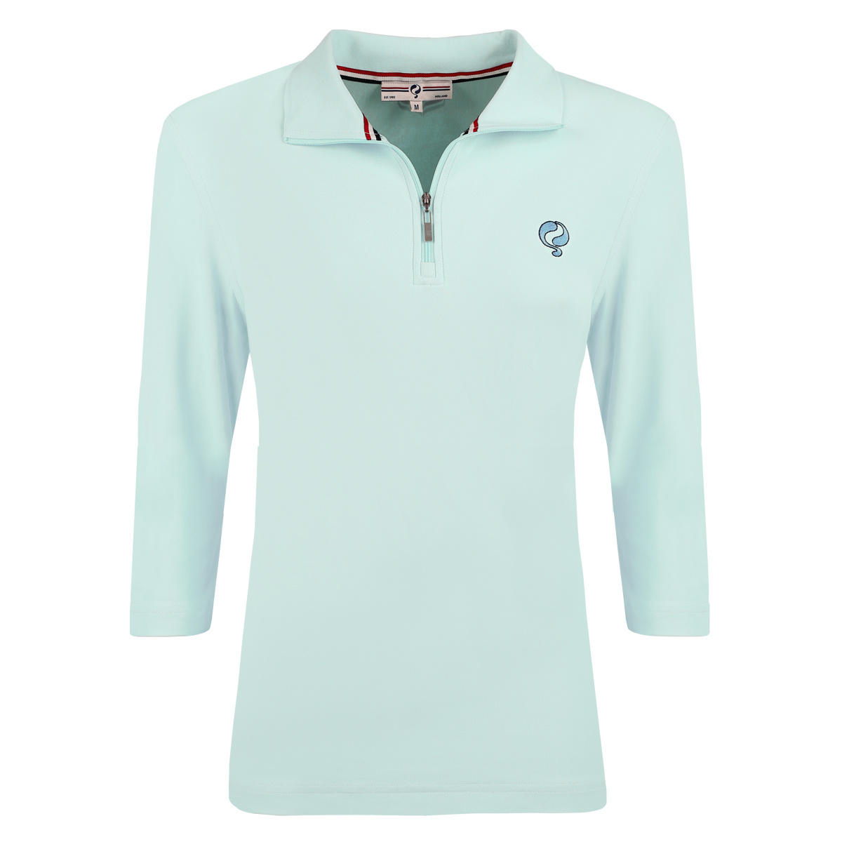 Lichtblauwe dames polo met halve ritssluiting en driekwart mouw. De mix van recycled polyester voelt aangenaam zacht en licht aan, waardoor de polo super comfortabel is.