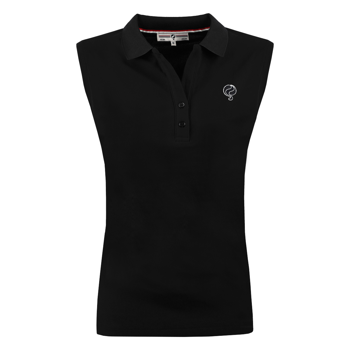 Zwarte sportieve dames spencer met polokraag en knoopsluiting