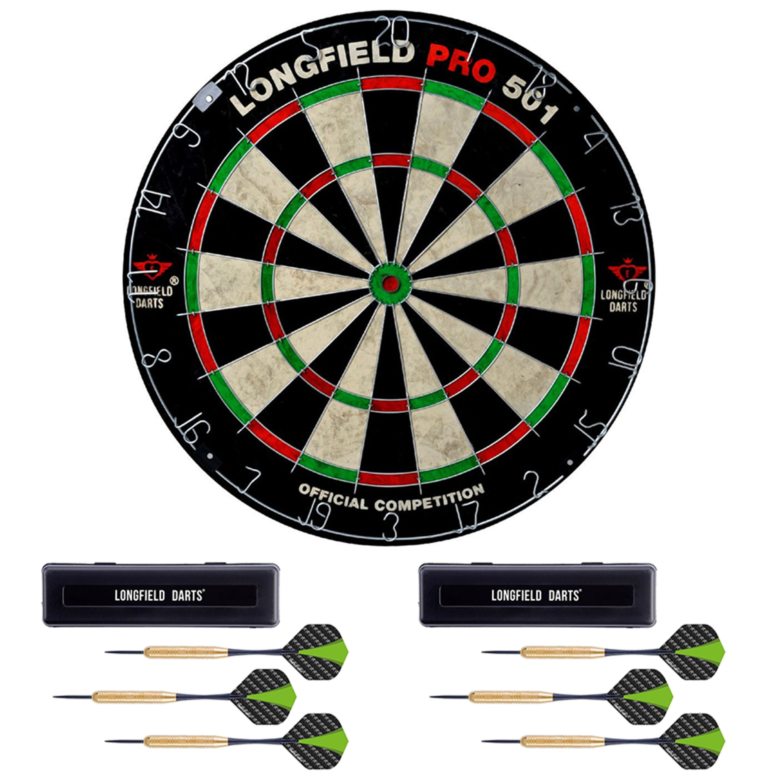 , Dit artikel bestaat uit:, 1x Longfield professional dartbord – 45.5 cm – hoge kwaliteit – wedstrijd bord pro 501, 2x Longfield Darts Dartpijlen set Brass Barrel – 3x st – 22 gram – Darten pijltjes – sport artikelen