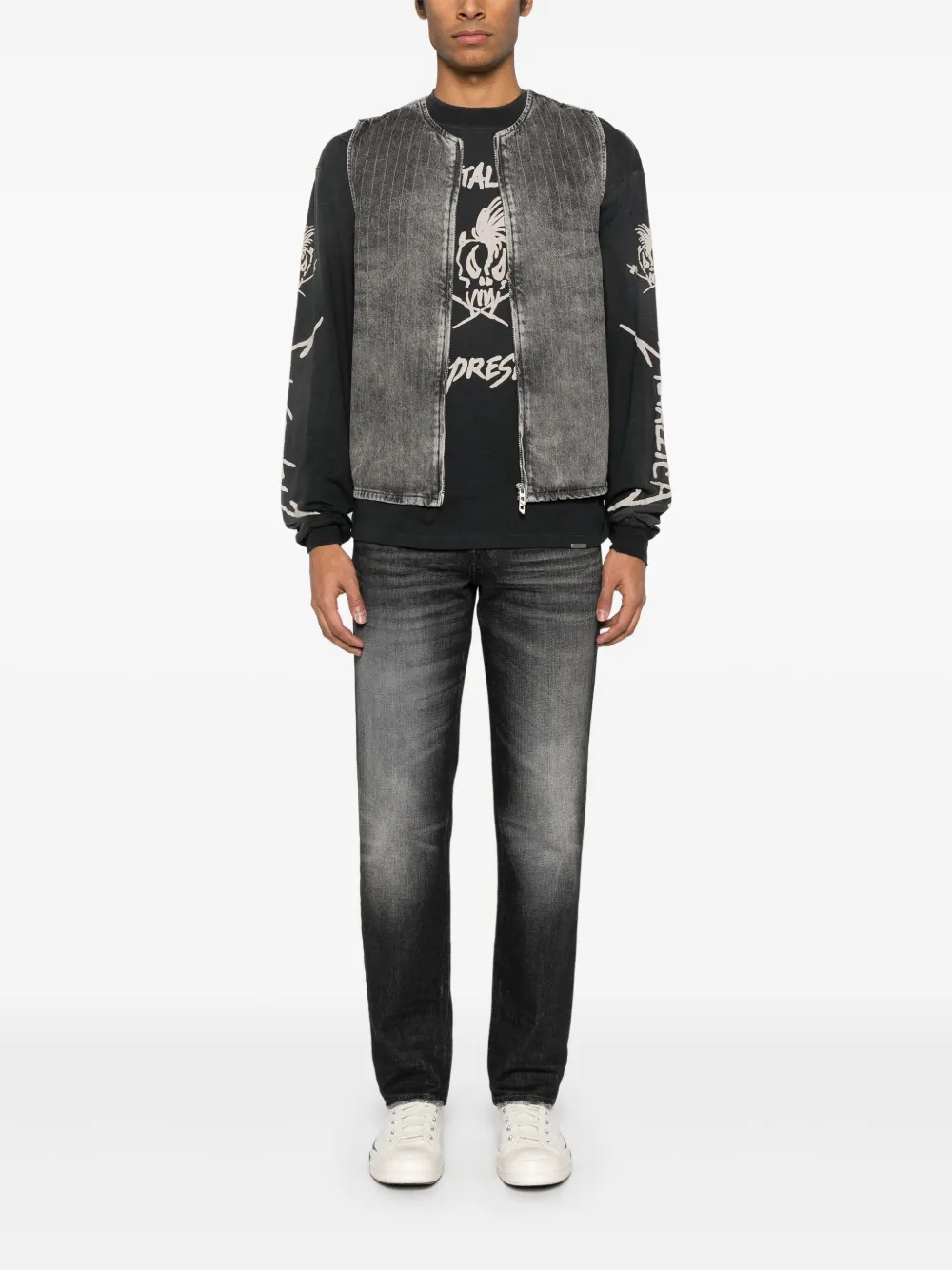 zwart knoopsluiting aan de voorkant riemlussen klassiek vijf zakkenmodel whisker-effect