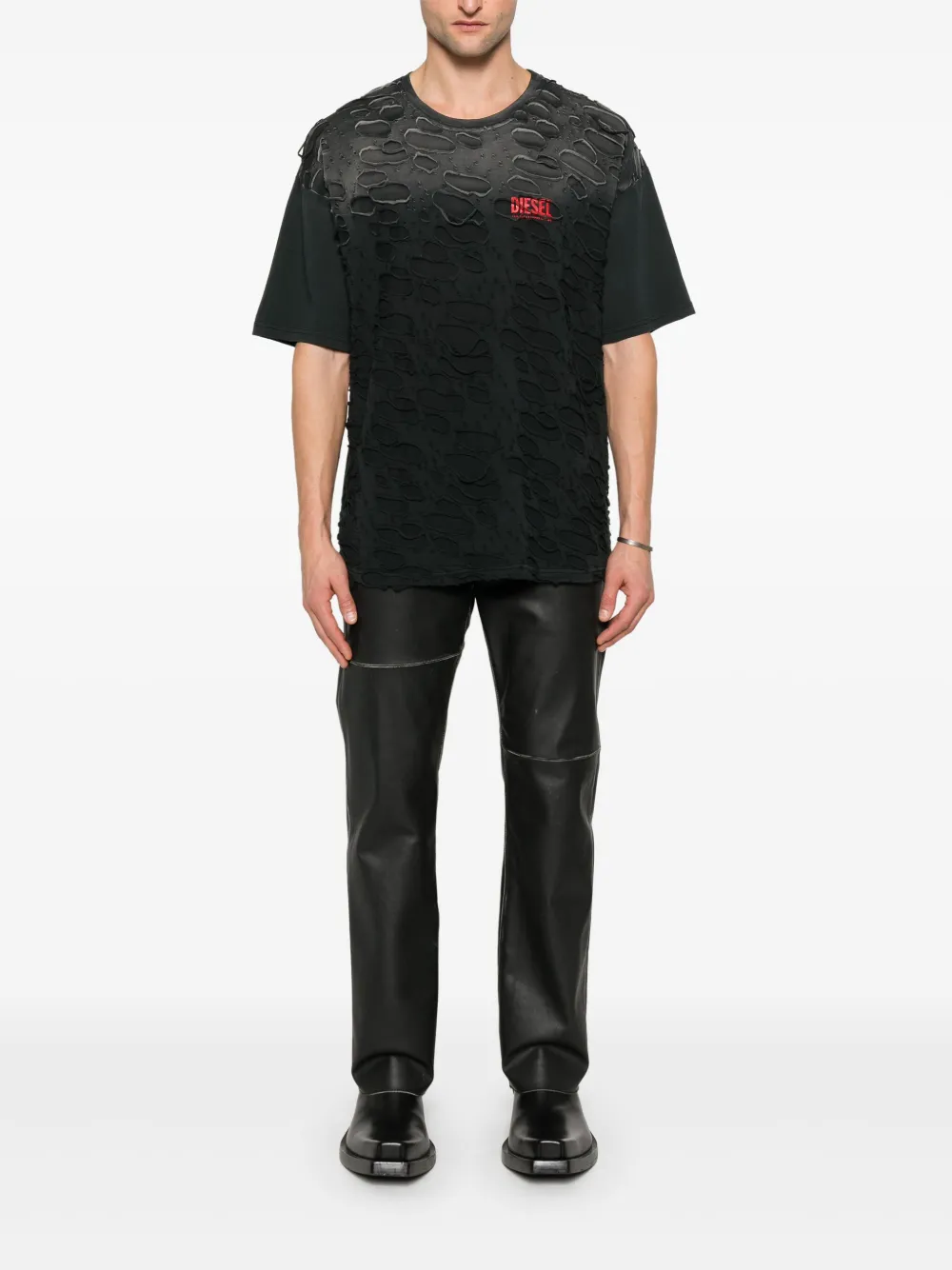 zwart logoprint op de borst ronde hals verlaagde schouders