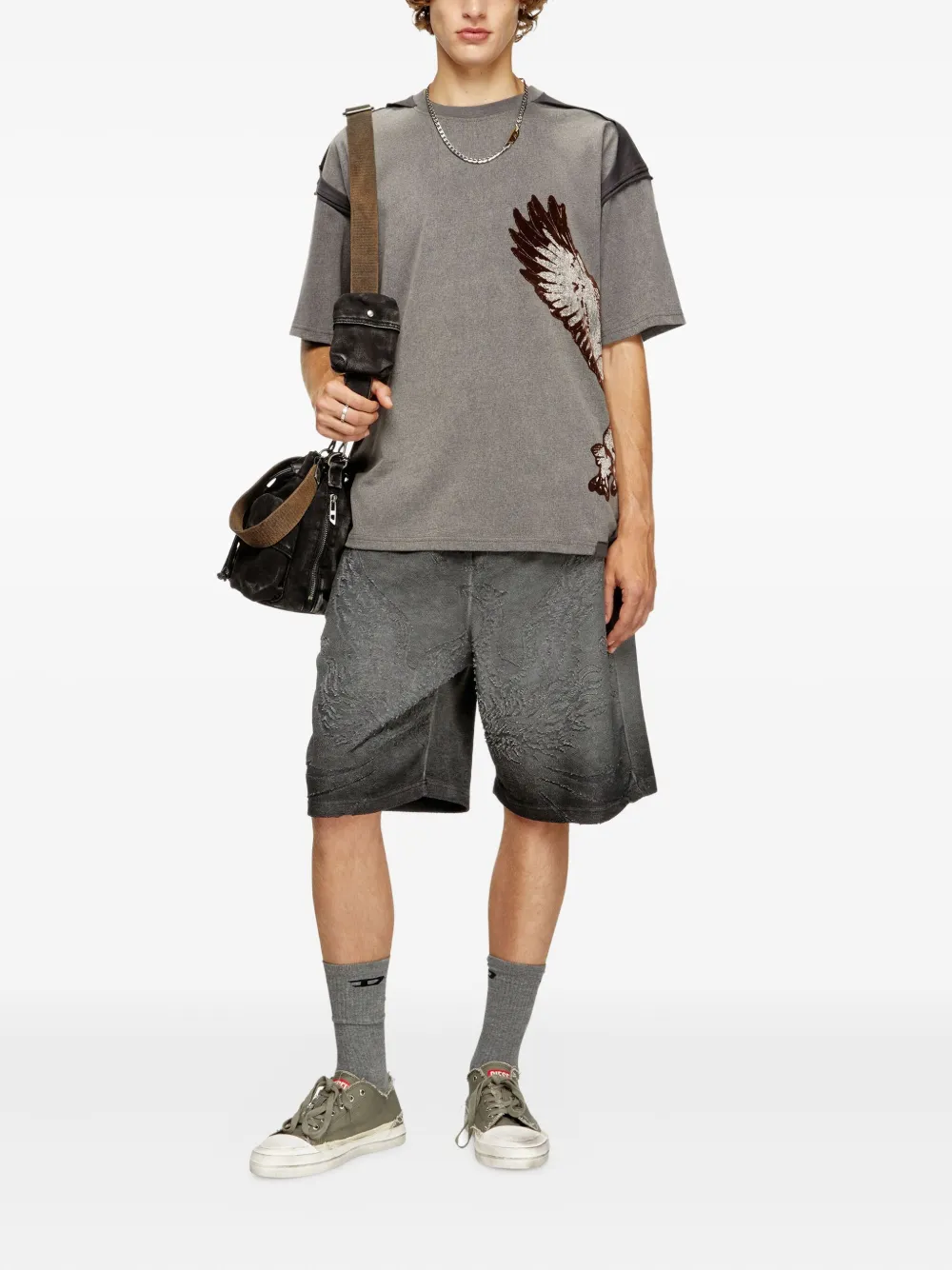 Diesel T-BOXT-PEELOFF T-shirt met vlakken en adelaarprint – Grijs