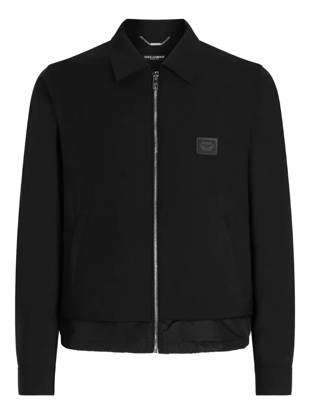 noir fermeture zippée devant plaque logo poches passepoilées manches longues