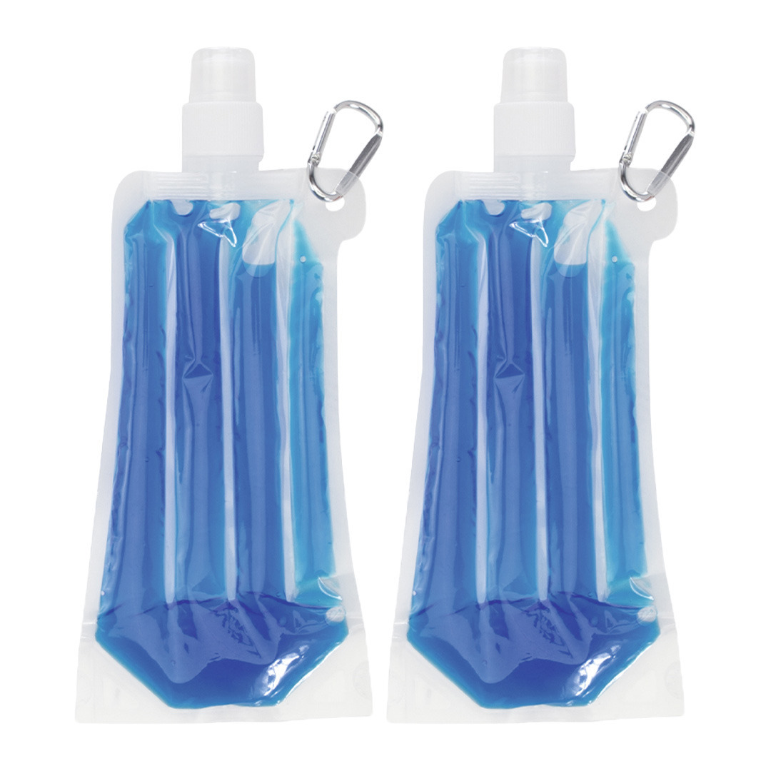 2x waterzak blauw 400 ml met haak. Handige waterfles met koelvloeistof. Met een haakje zodat u deze overal aan kunt hangen. De waterfles wordt geleverd met een drinkmondje erop en is navulbaar. Inhoud: Ongeveer 400ml. Materiaal: Kunststof. Kleur: blauw. Outdoor festival gadget benodigdheden omdat je ze heel makkelijk kunt opbergen als je ze leeg hebt. Onmisbaar tijdens je wandelingen/hike. Stop de waterfles voordat je hem gaat gebruiken in de vriezer en jou water blijft nog langer koel.