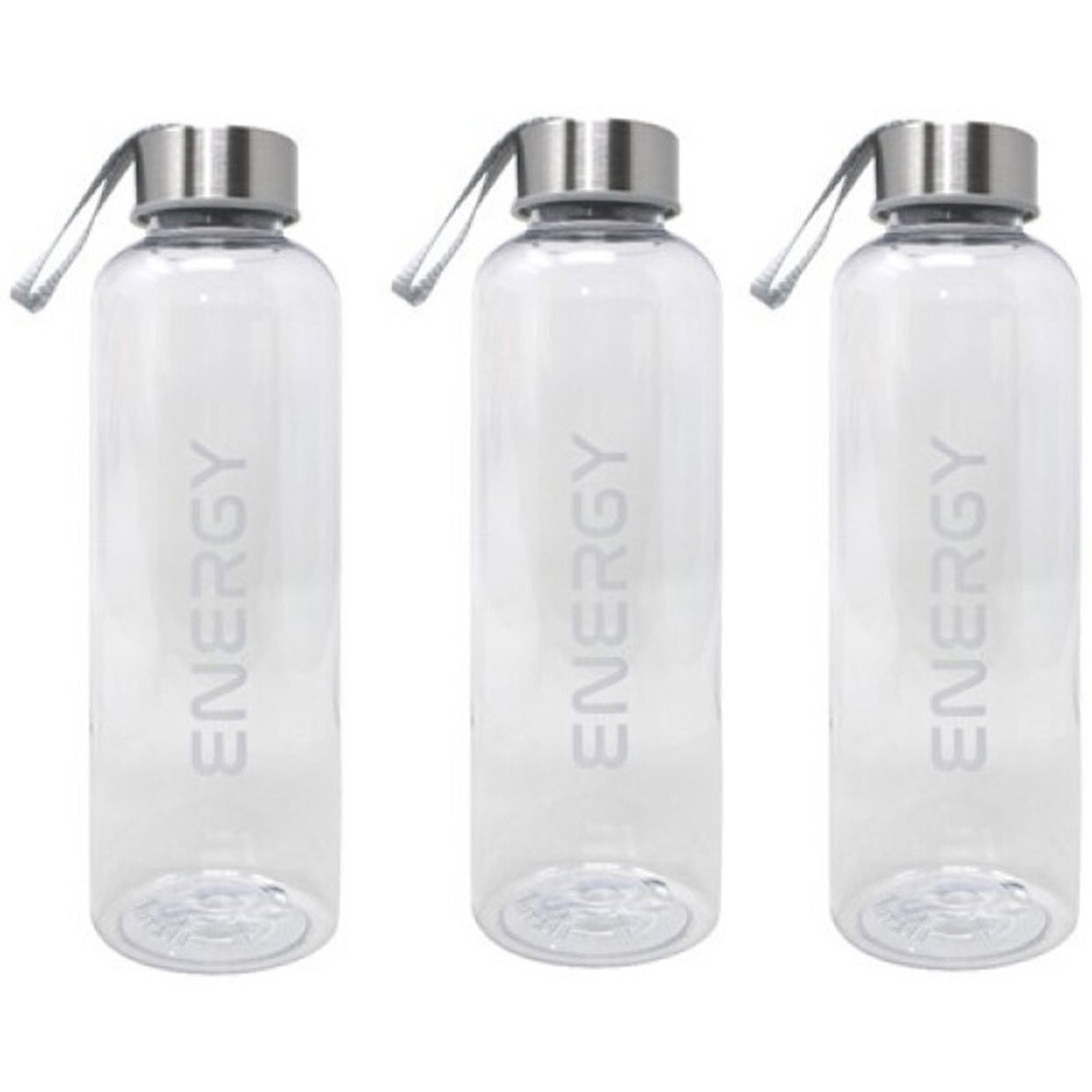 3x drinkfles/bidon/waterfles met een inhoud van 570 ml, gemaakt van transparant kunststof met een RVS afsluitdop. Handige multifunctionele drinkfles voor sapjes en water. Ideaal voor recreatie en/of sport. Formaat: ca. 6,5 x 21 cm.